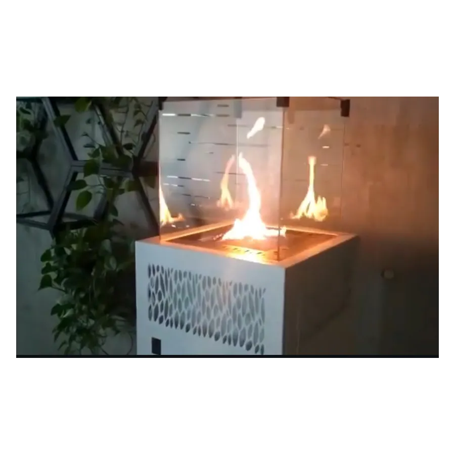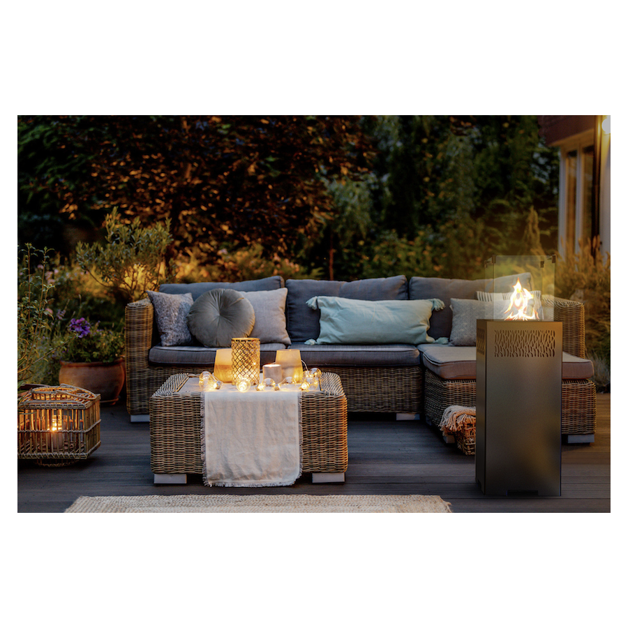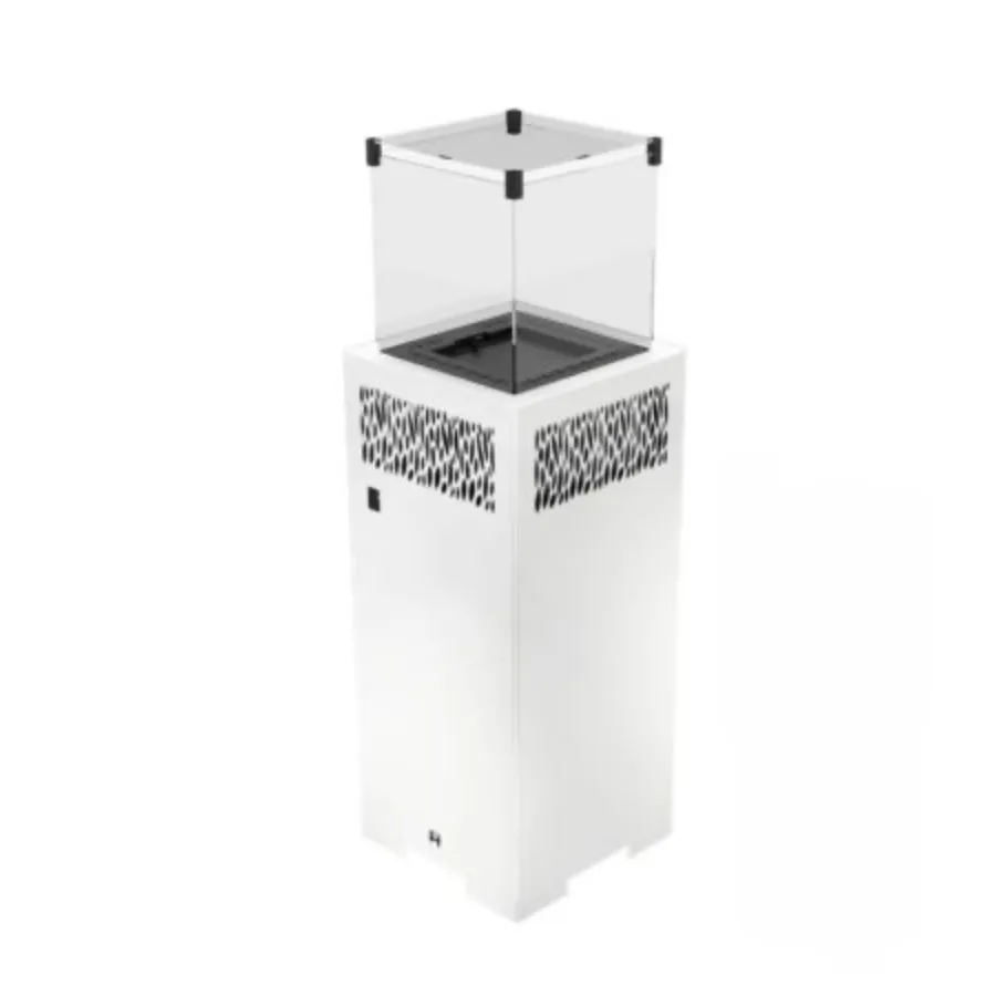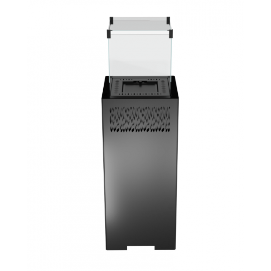 Linia eleganckich ogrzewaczy na taras FEUNTE Q charakteryzuje się klasyczną budową. Na rozwiązanie to decydują się osoby lubiące proste wzory i nieskomplikowaną geometrię. Komora paleniska jest w kształcie prostopadłościanu, pomalowanego czarną farbą nadającą bryle szyku. Powyżej niej umieszczono szklane panele, które z czterech stron oraz od góry osłaniają właściwe palenisko przed działaniem wiatru i deszczu.