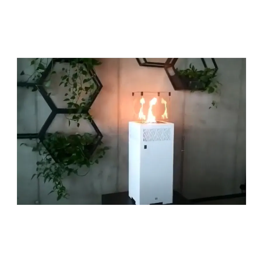 FEUNTE Q wytwarza naturalne, przyjemne ciepło, które jest odczuwalne nawet w odległości kilku metrów. Ponadto delikatnie rozświetla przestrzeń, w której został ustawiony. Zasilany gazem z butli o pojemności 11 kg może bezustannie pracować nawet do 55 godzin. Intensywność i długość pracy uzależniona jest od ustawionej mocy płomienia, który ma możliwość regulacji jego intensywności na 7 sposobów.