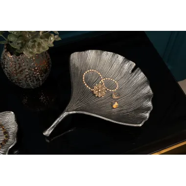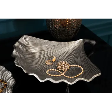 Stylowa dekoracja stołu! Srebrna patera LEAF została zaprojektowana w kształcie filigranowego liścia i natychmiast przyciągnie wzrok na każdym stole jadalnym lub kredensie. Długa miska jest idealna do oferowania gościom i gościom np. owoców, czekoladek lub ciastek.