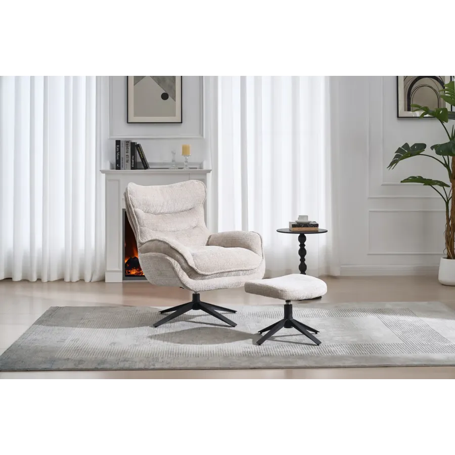 Stabilna, czarna podstawa oraz funkcja obrotowa zapewniają wygodę i praktyczność w codziennym użytkowaniu. To idealny wybór do salonu, biura czy kącika do czytania – ponadczasowa forma i staranne wykończenie sprawiają, że fotel CLOUD doskonale uzupełni nowoczesne, skandynawskie i minimalistyczne aranżacje.