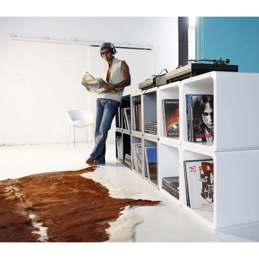 Elastyczny regał: elegancka kostka w stylu retro w salonie - Inteligentna designerska kostka wykonana z płyty MDF z matowym wykończeniem w jaskrawobiałej bieli, tworząca ekskluzywny, współczesny charakter. Zaokrąglone krawędzie dla najlepszego stylu retro. Kostkę można wykorzystać do wielu celów, robiąc stylowe wrażenie jako stolik boczny, hoker, półka, a nawet po prostu jako dekoracyjny element wyposażenia. Maksymalne obciążenie wynosi 50 kg. Okrągły, retro, bardzo nowoczesny i nowatorski: to nasz świat trendów Retro Design. Wyznawcy trendów ze zmysłem dobrego designu będą pod ogromnym wrażeniem