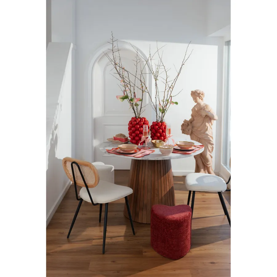 Nasz stołek w kształcie serca oferuje wygodną piankową wyściółkę w połączeniu z unikalnym designem. Ten uroczy taboret sprawdzi się zarówno jako niewielki, przyciągający wzrok obiekt designerski, jak i jako praktyczne, dodatkowe siedzisko lub wygodny podnóżek do fotela lub sofy. Stołek możesz wykorzystać jako dekoracyjne siedzisko w salonie, sypialni czy pokoju gościnnym, a jeśli umieścisz na nim tacę, Lovely może również służyć jako zaimprowizowany stolik boczny. Ten stołek z pokryciem z tkaniny jest lekki (2,4 kg), zajmuje mało miejsca i jest wszechstronny – idealny na przytulne godziny i jako prezent od serca