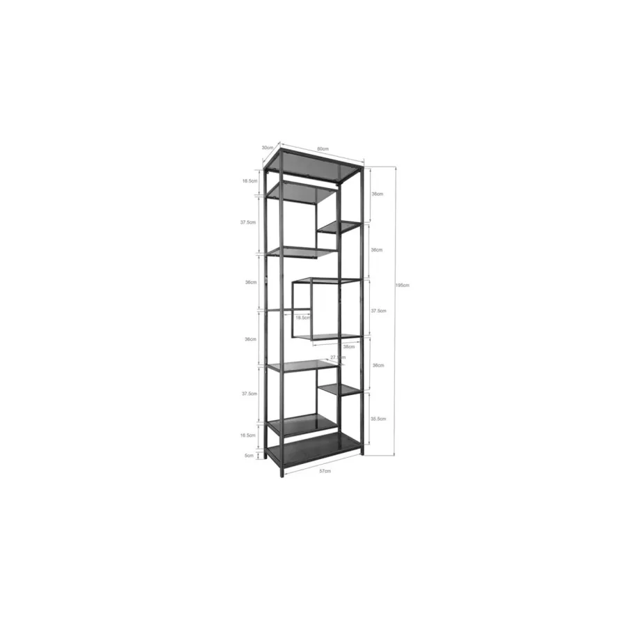 Otwarte półki są idealnymi towarzyszami wyposażenia: pomagają utrzymać porządek, wyglądają lekko, a dzięki dużej powierzchni do przechowywania na półkach oferują dużo miejsca na dekoracje, pudełka, kosze lub wazony - lub, w stylu klasycznym, na książki. Ten ciemnoczarny regał z serii Loft będzie stanowić elegancką figurę w każdym pomieszczeniu