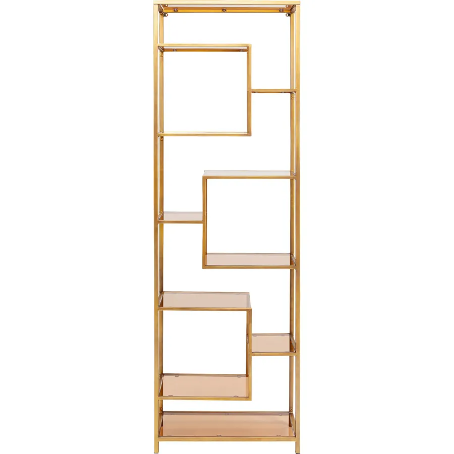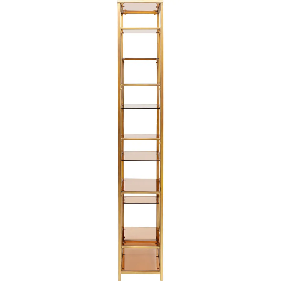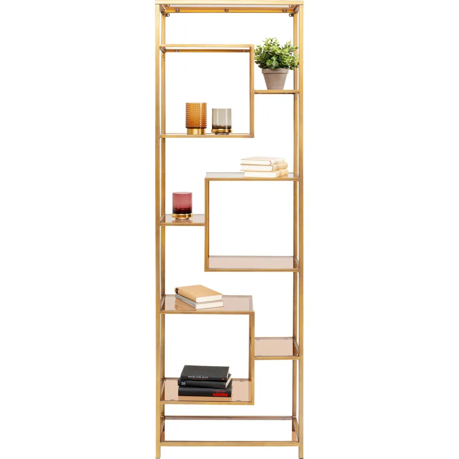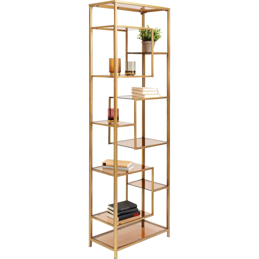 Otwarte półki są idealnymi towarzyszami wyposażenia: pomagają utrzymać porządek, wyglądają lekko, a dzięki dużej powierzchni do przechowywania na półkach oferują dużo miejsca na dekoracje, pudełka, kosze lub wazony - lub, w stylu klasycznym, na książki. Regał w kolorze złotym z serii Loft będzie elegancko prezentował się w każdym pomieszczeniu. Jego wymiary sprawiają, że sprawdzi się również w wąskich i mniejszych pomieszczeniach, takich jak przedpokój czy wnęka, na przykład w salonie, sypialni lub w domowym biurze