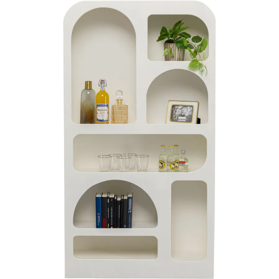 Meble i dekoracje o zaokrąglonych, zaokrąglonych kształtach stały się integralną częścią aranżacji wnętrz. To zasługa miękkiej sylwetki, która tworzy harmonię w pomieszczeniu. Pięć przegródek o różnych kształtach to małe pomieszczenia, w których można przechowywać i układać ulubione przedmioty. Oczywiście, na tej półce znajdzie się również miejsce na książki. Półka ścienna jest w całości lakierowana, dzięki czemu mebel jest łatwy w czyszczeniu – wystarczy odkurzyć, a powierzchnię można również przetrzeć miękką, wilgotną ściereczką, w razie potrzeby używając łagodnego detergentu.