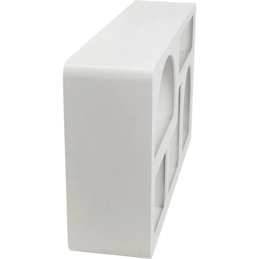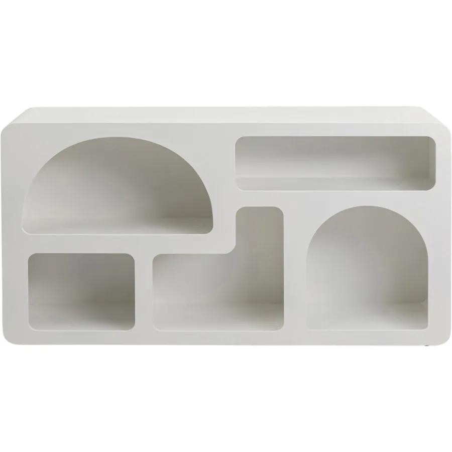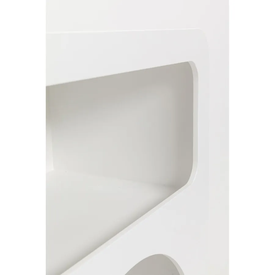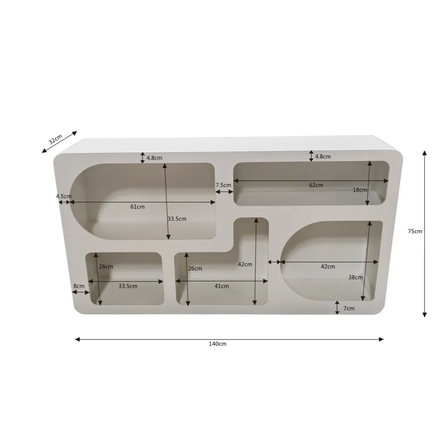 Meble i dekoracje o zaokrąglonych, zaokrąglonych kształtach stały się integralną częścią aranżacji wnętrz. To zasługa miękkiej sylwetki, która tworzy harmonię w pomieszczeniu. Pięć przegródek o różnych kształtach to małe pomieszczenia, w których można przechowywać i układać ulubione przedmioty. Oczywiście, na tej półce znajdzie się również miejsce na książki. Półka ścienna jest w całości lakierowana, dzięki czemu mebel jest łatwy w czyszczeniu – wystarczy odkurzyć, a powierzchnię można również przetrzeć miękką, wilgotną ściereczką, w razie potrzeby używając łagodnego detergentu.