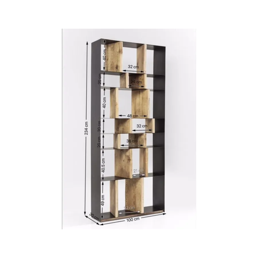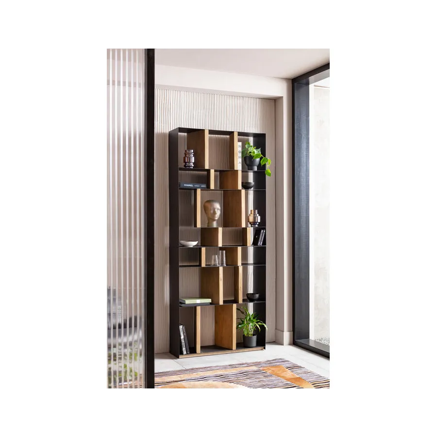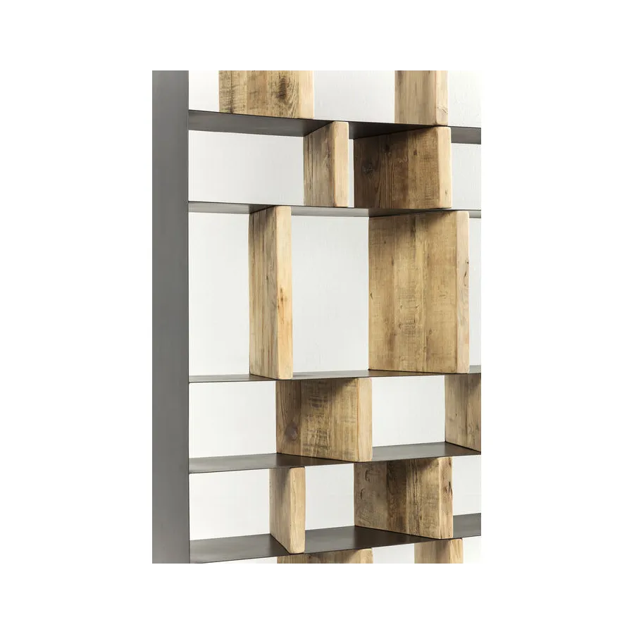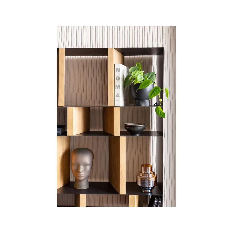Dobrze umiejscowiony. Dzięki indywidualnie zaprojektowanym przegródkom regał z serii Storm oferuje mnóstwo miejsca na dekoracje i książki, a przede wszystkim pomysłowy, zróżnicowany wygląd. Solidne, drewniane elementy w naturalnym kolorze zapewniają stabilność filigranowej, metalowej konstrukcji. Dostępny również w innych wersjach.