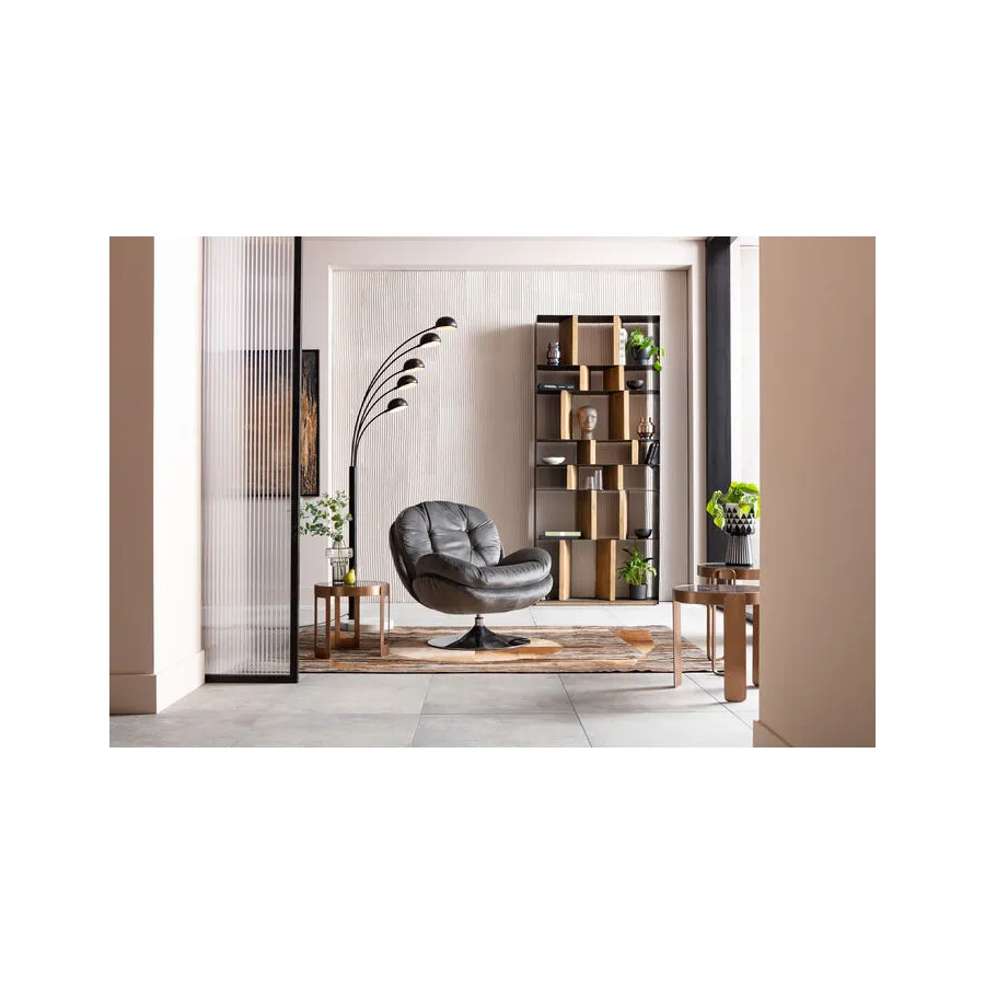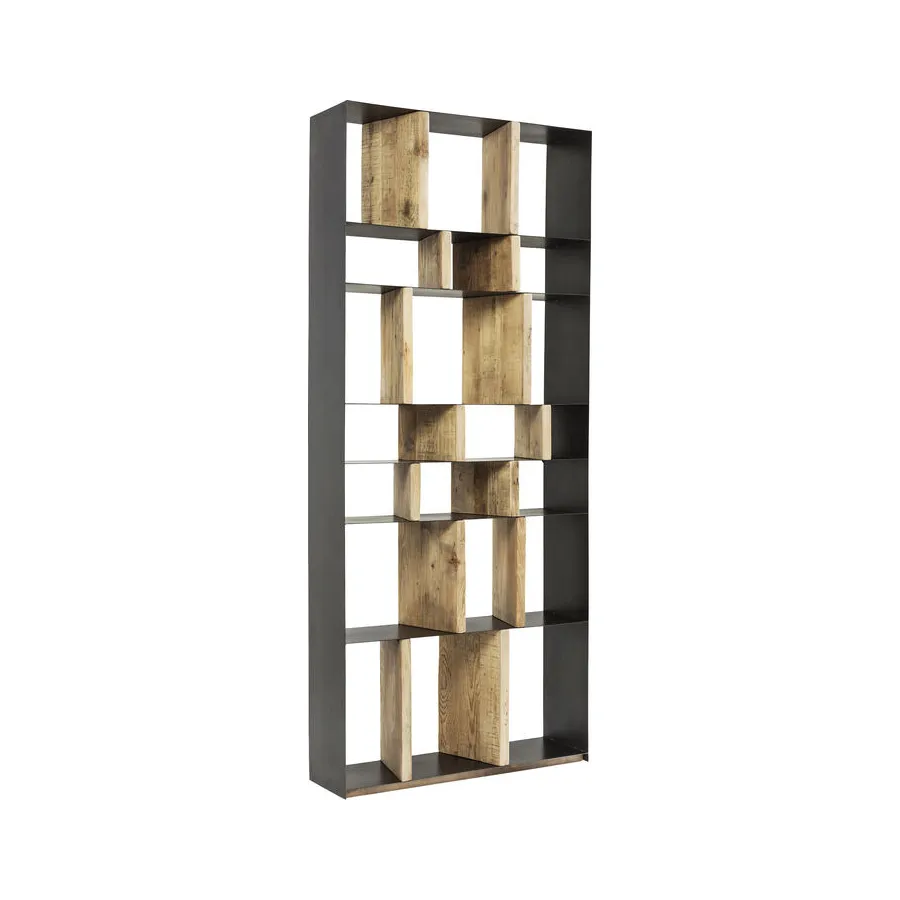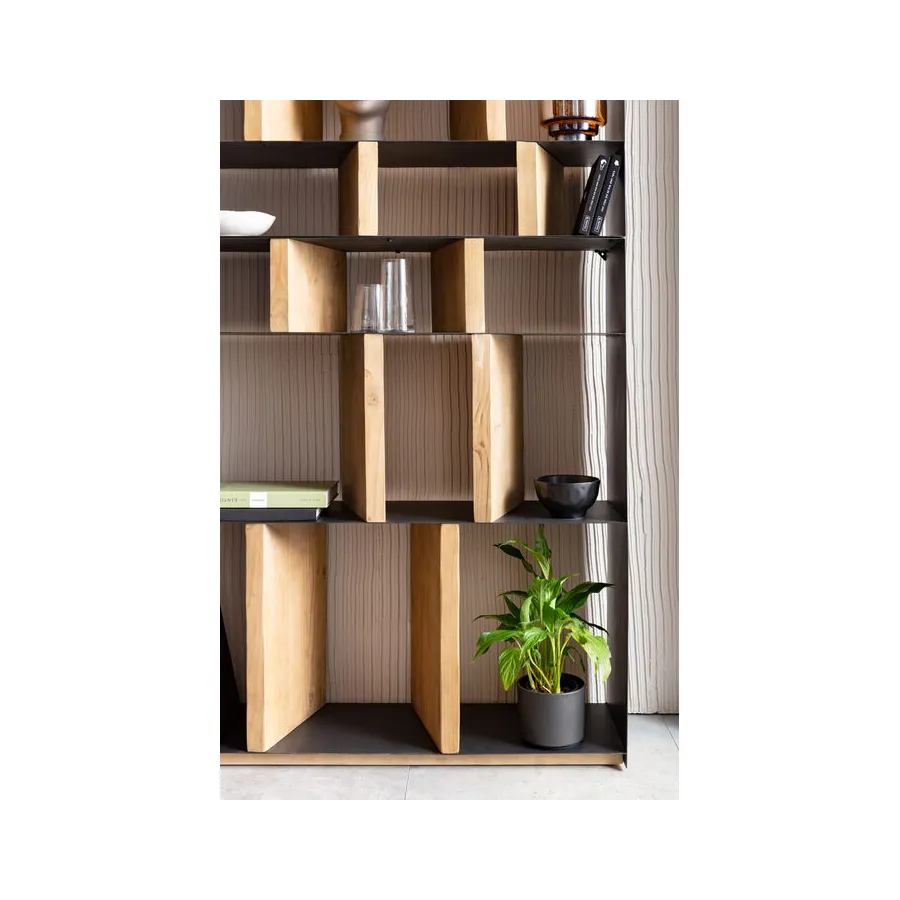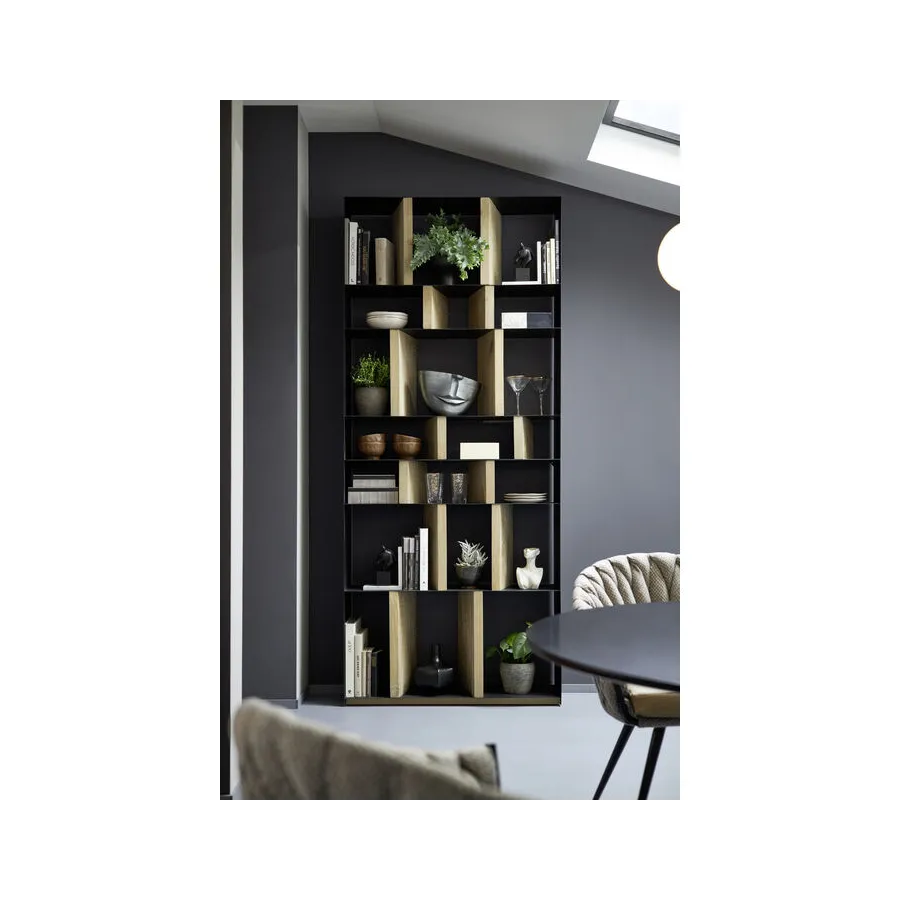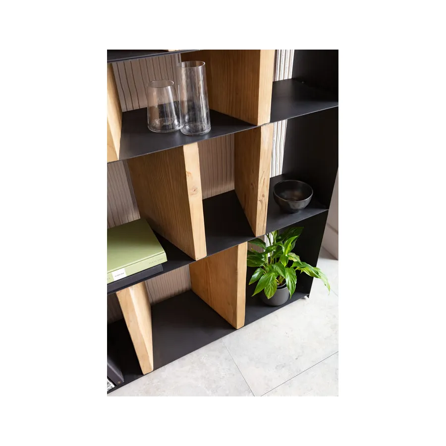 Dobrze umiejscowiony. Dzięki indywidualnie zaprojektowanym przegródkom regał z serii Storm oferuje mnóstwo miejsca na dekoracje i książki, a przede wszystkim pomysłowy, zróżnicowany wygląd. Solidne, drewniane elementy w naturalnym kolorze zapewniają stabilność filigranowej, metalowej konstrukcji. Dostępny również w innych wersjach.