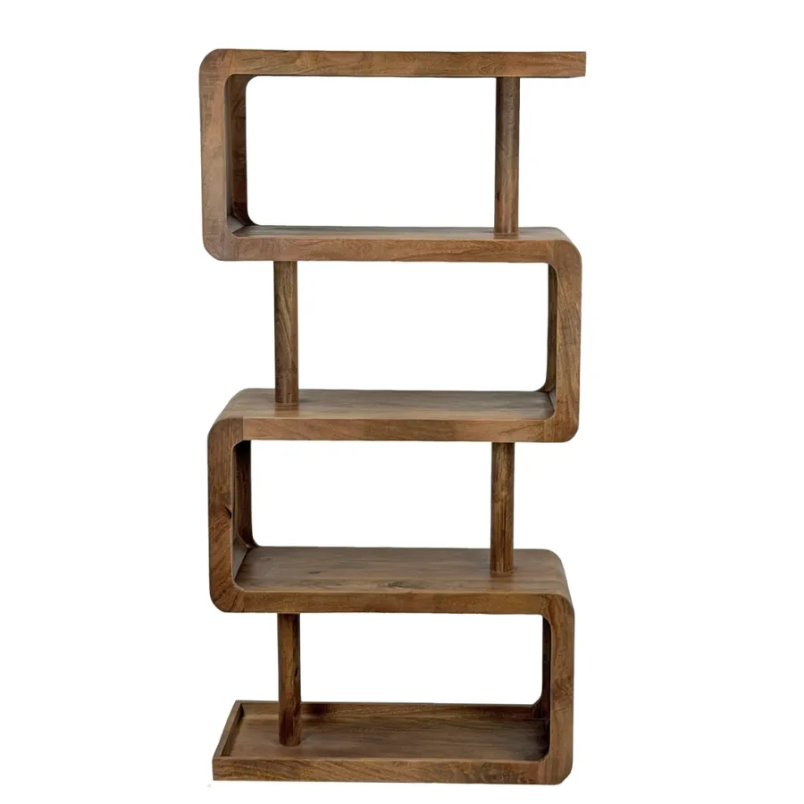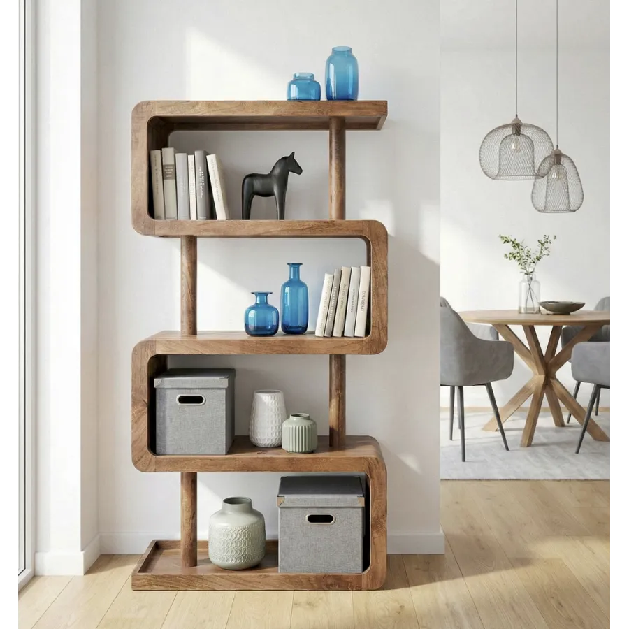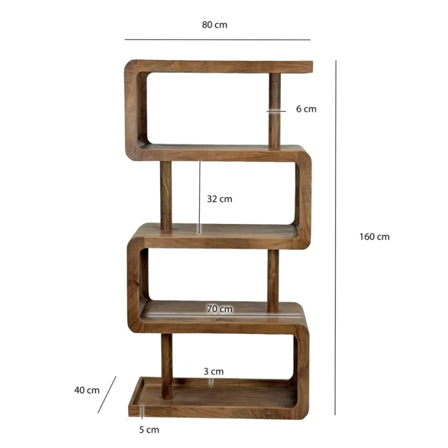Ten stylowy, wysoki regał przyciąga uwagę swoją oryginalną, zygzakowatą formą i nowoczesnym designem. Delikatnie falująca konstrukcja nadaje mu lekkości i sprawia, że staje się nie tylko praktycznym meblem, ale również efektowną dekoracją wnętrza. Otwarta forma zapewnia przestronny, „lekki” wygląd i doskonale sprawdza się nawet w mniejszych pomieszczeniach.