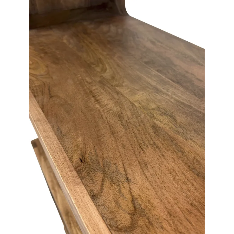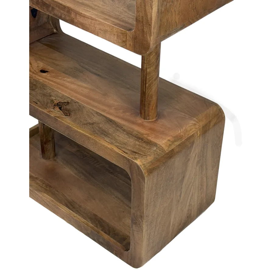 Wykonany z litego drewna mango w ciepłym, ciemnobrązowym odcieniu, regał zachwyca naturalnym wykończeniem i solidnością. To idealne rozwiązanie do salonu, jadalni, biura czy gabinetu.