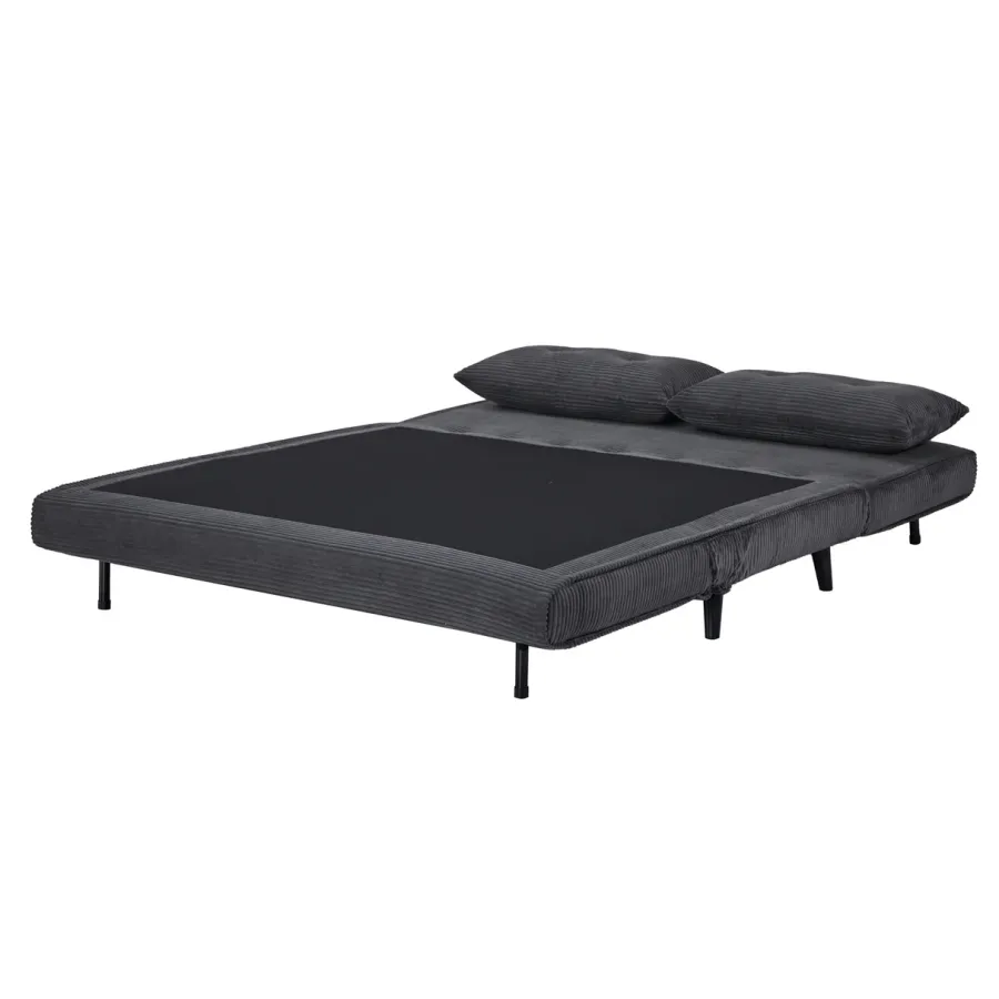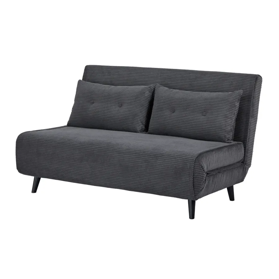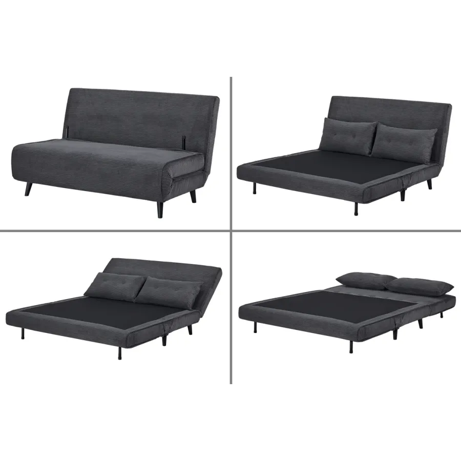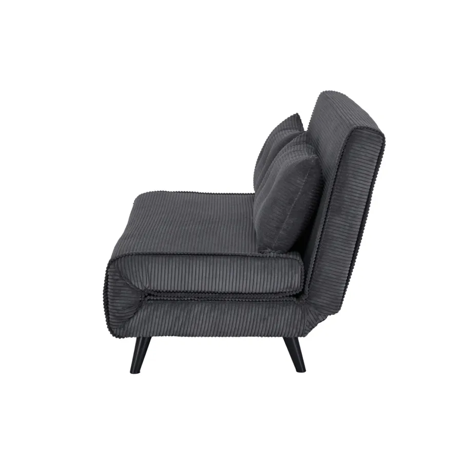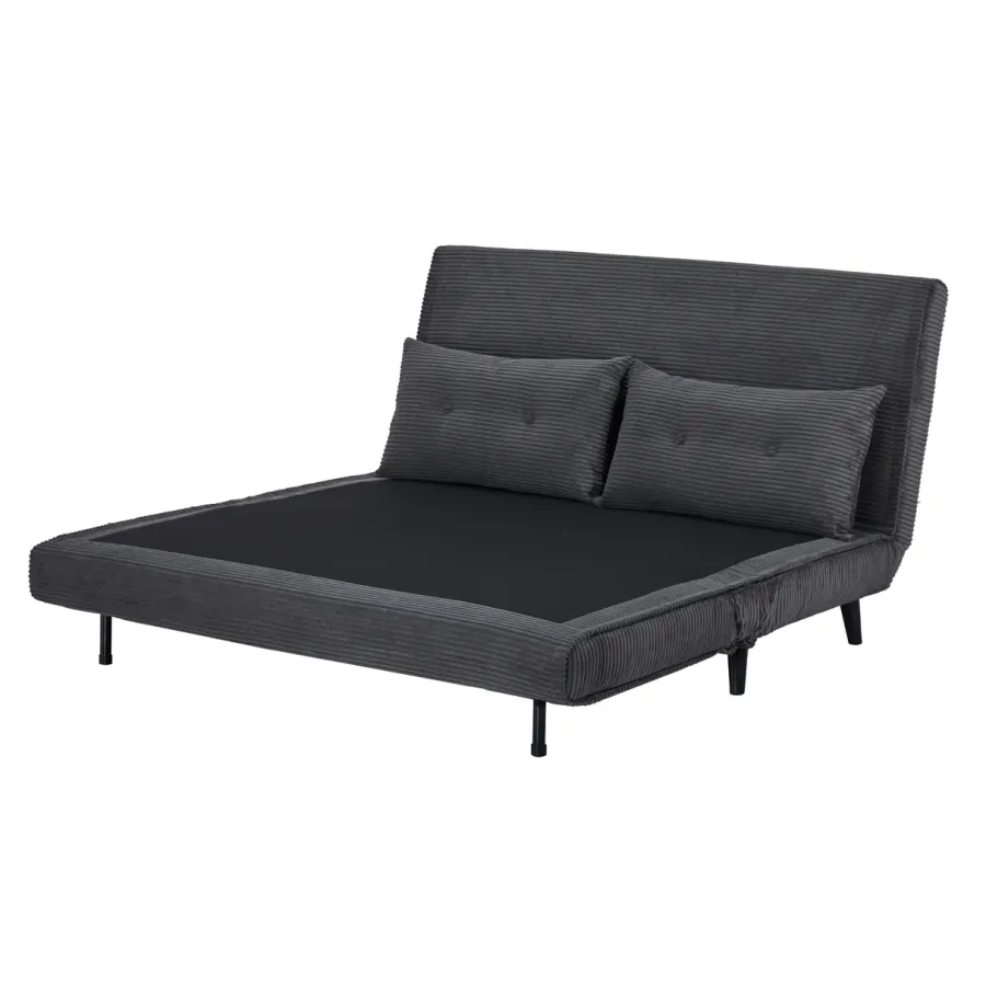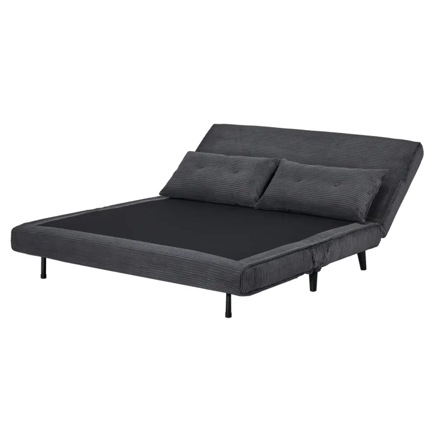 Duża sofa rozkładana SMART MULTIFUNCTION zachwyca czystym designem, wysoką funkcjonalnością i ponadczasowym stylem retro. Miękkie, sztruksowe obicie w stylowym beżu zapewnia wyjątkowo przyjemną i domową atmosferę. Dołączone dekoracyjne poduszki podkreślają przytulny charakter fotela i zapewniają dodatkowy komfort. Czarne, lakierowane nóżki z drewna sosnowego dodają wyrafinowanego charakteru i są wyposażone w praktyczne filcowe podkładki – idealne do delikatnych podłóg.