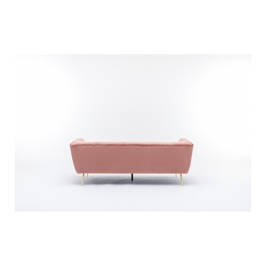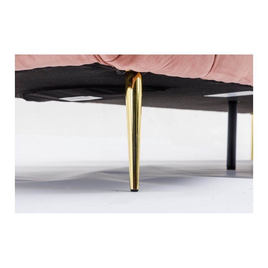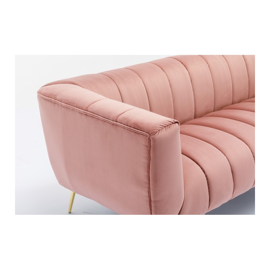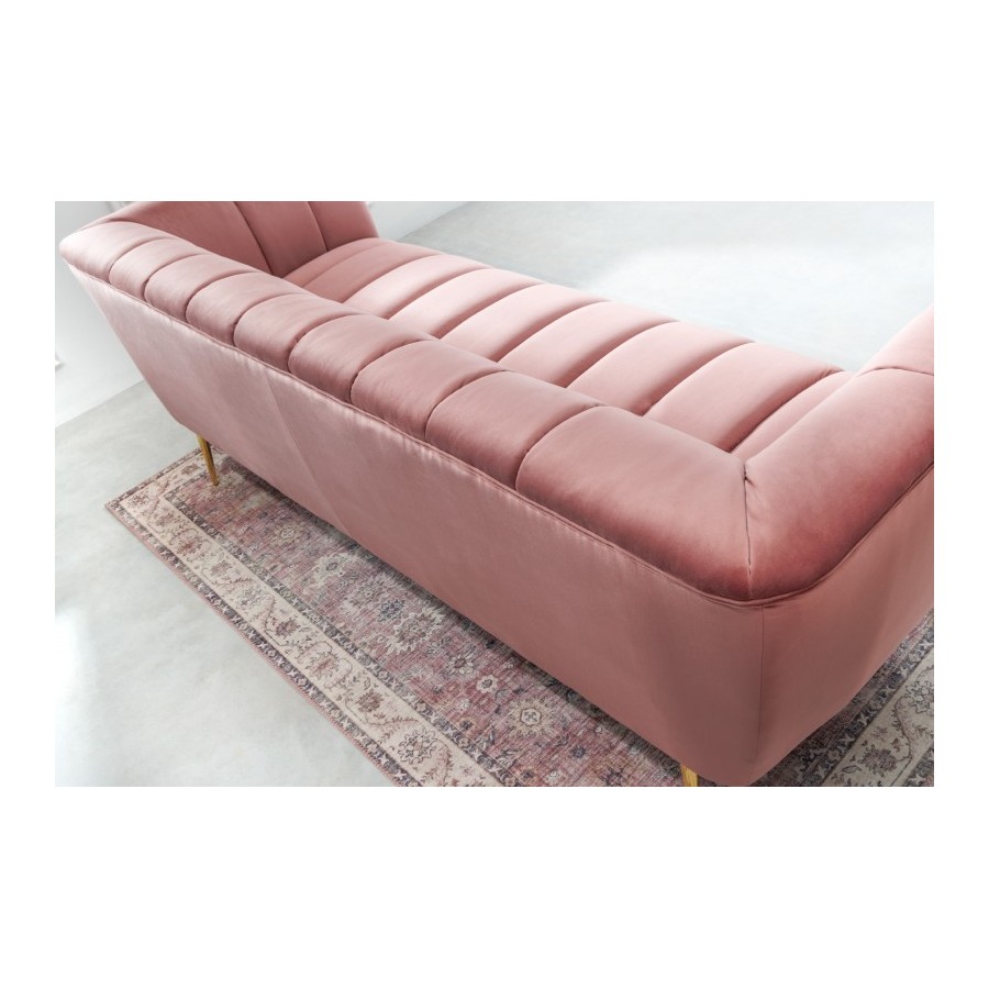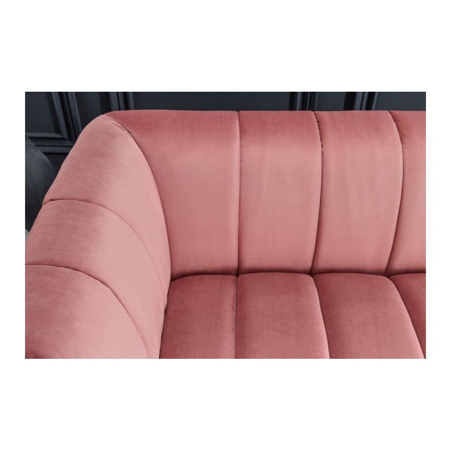 Tył sofy wypoczynkowej jest również pokryty aksamitem, dzięki czemu można ją umieścić w dowolnym miejscu pokoju jako atrakcyjny element przyciągający wzrok lub oddzielający pokój. Uzupełnij sofę stolikami bocznymi, lampami lub lustrem ściennym z czarną metalową ramą, aby uzyskać harmonijny ogólny obraz