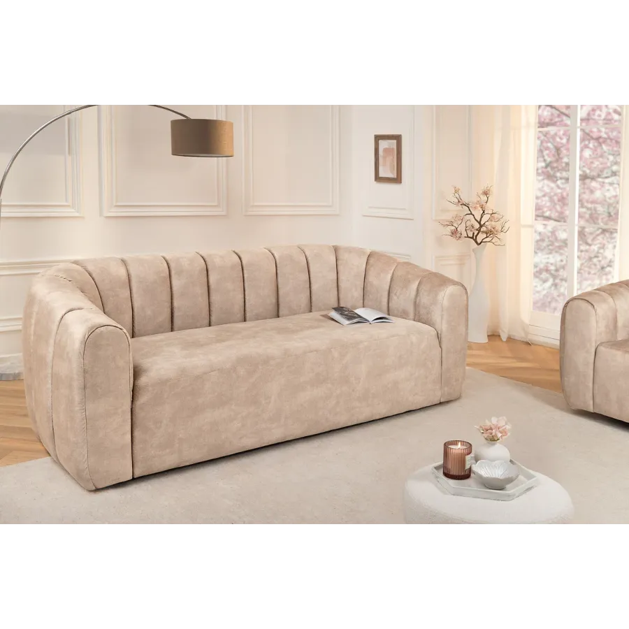 Invicta Sofa tapicerowana BABYLON 3 osobowa beżowy aksamit 200cm / 44511