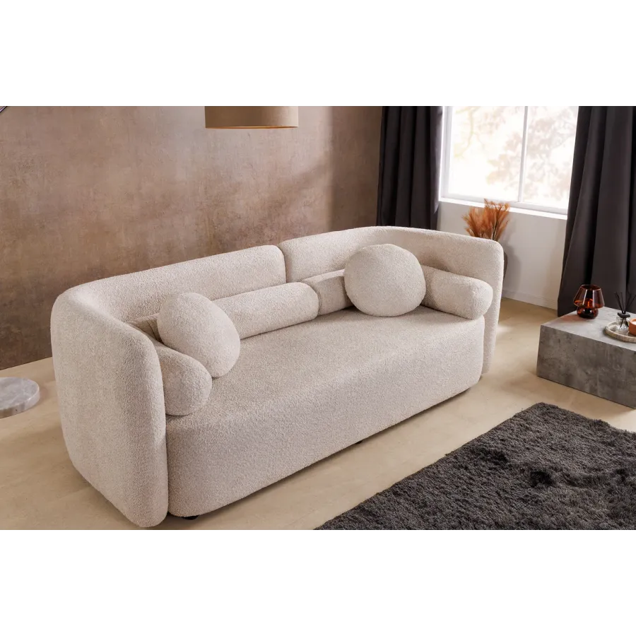 Invicta Sofa tapicerowana ART DECO 3 osobowa beżowe bouclé 200cm / 44509