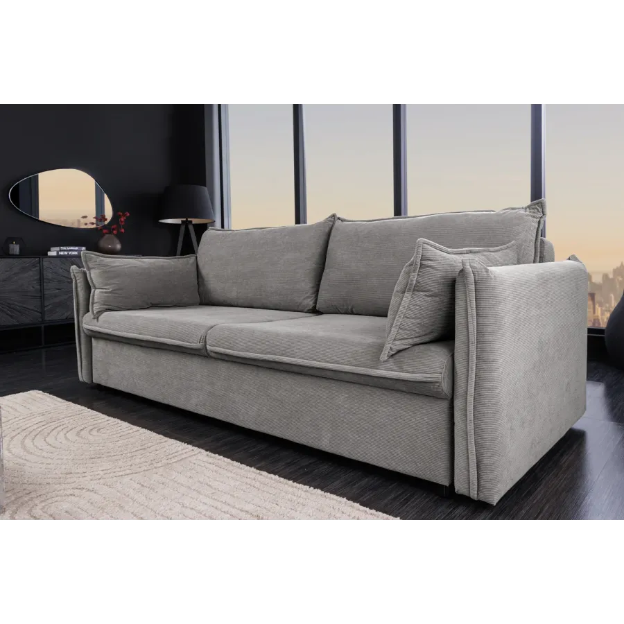 Invicta Sofa rozkładana APARTAMENT szary sztruks 215 x 90 x 100cm / 44503