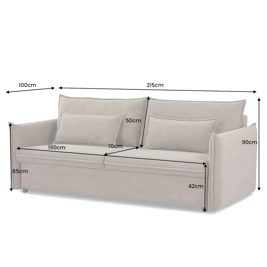 Invicta Sofa rozkładana APARTMENT szary sztruks 215 x 90 x 100cm / 44503