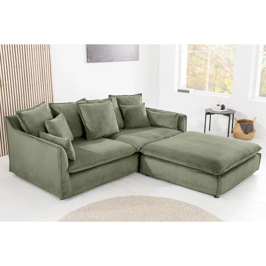 Invicta Sofa HEAVEN 3 osobowa zielony sztruks 202 x 88 x 105cm / 46107