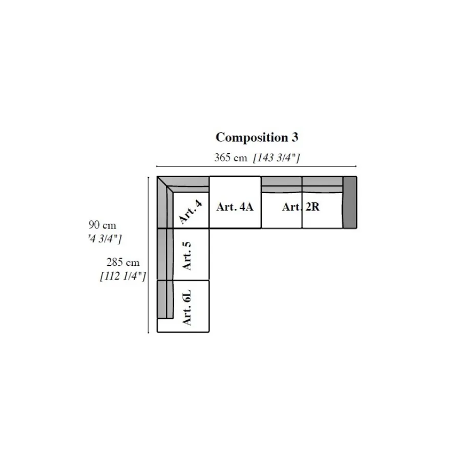 PERLA Włoska Sofa narożna 365 x 75 x 285cm / ArredoClassic