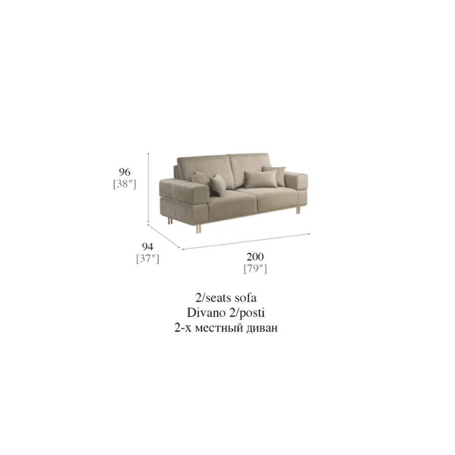 FIAMMA Włoska Sofa tapicerowana 2 osoba 200 x 96 x 94cm / ArredoClassic