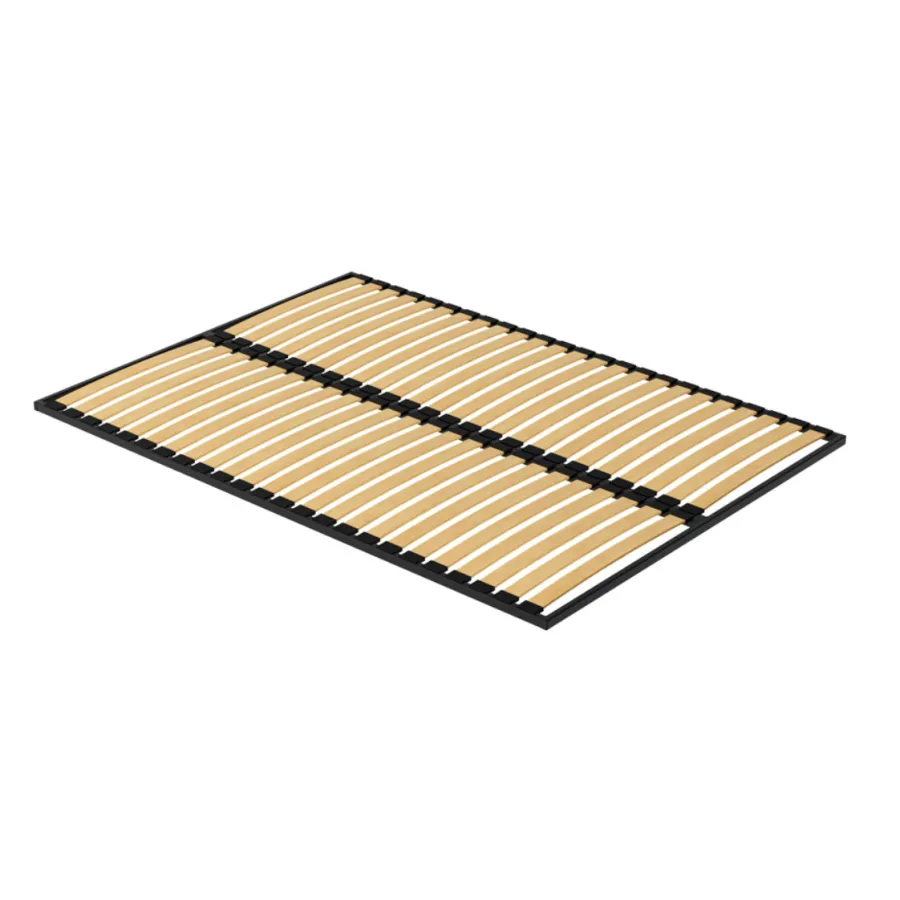 Metalowy stelaż pod materac (wkład do łóżka). Stelaż wykonany jest z profilu 20x30x2, malowany w kolorze czarnym. Wypełniony jest profilowanymi listwami brzozowymi o szerokości 53mm, które są zakotwiczone w ramie ruchomymi końcówkami z tworzywa sztucznego. Stelaż posiada 48 (2 x 24) elastyczne listwy osadzone w kauczukowych uchwytach zapewniających materacowi doskonałe podparcie oraz amortyzację.