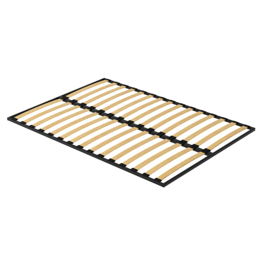 Metalowy stelaż pod materac (wkład do łóżka). Stelaż wykonany jest z profilu 20x30x2, malowany w kolorze czarnym. Wypełniony jest profilowanymi listwami brzozowymi o szerokości 53mm, które są zakotwiczone w ramie ruchomymi końcówkami z tworzywa sztucznego. Stelaż posiada 32 (2 x 16) elastyczne listwy osadzone w kauczukowych uchwytach zapewniających materacowi doskonałe podparcie oraz amortyzację.