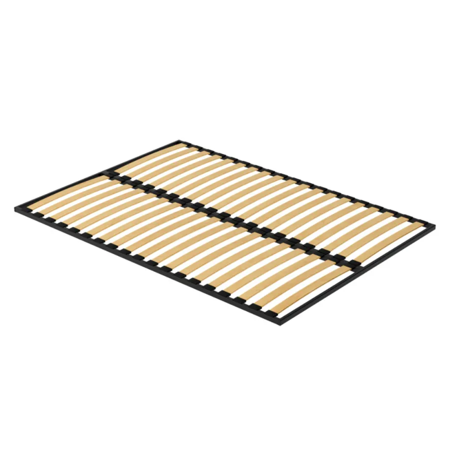 Metalowy stelaż pod materac (wkład do łóżka). Stelaż wykonany jest z profilu 20x30x2, malowany w kolorze czarnym. Wypełniony jest profilowanymi listwami brzozowymi o szerokości 53mm, które są zakotwiczone w ramie ruchomymi końcówkami z tworzywa sztucznego. Stelaż posiada 38 (2 x 19) elastyczne listwy osadzone w kauczukowych uchwytach zapewniających materacowi doskonałe podparcie oraz amortyzację.