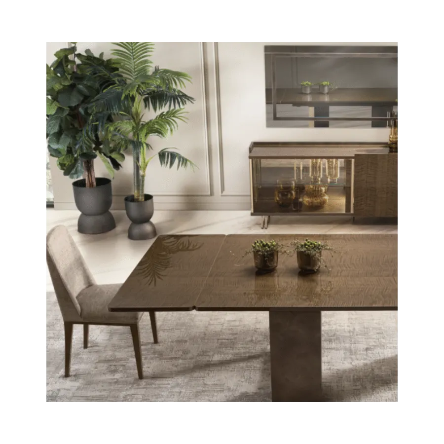 Fiamma to wyrafinowana kolekcja mebli do jadalni od renomowanej marki ArredoClassic, która łączy w sobie ponadczasową włoską elegancję z nutą współczesnego designu. Harmonijne, ciepłe odcienie i starannie dobrane, luksusowe materiały tworzą wyjątkową atmosferę wnętrza.