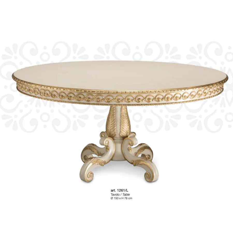1261L – stół wykonany z litego drewna, z ręcznie rzeźbionymi detalami, które odzwierciedlają elegancję klasycznego stylu.