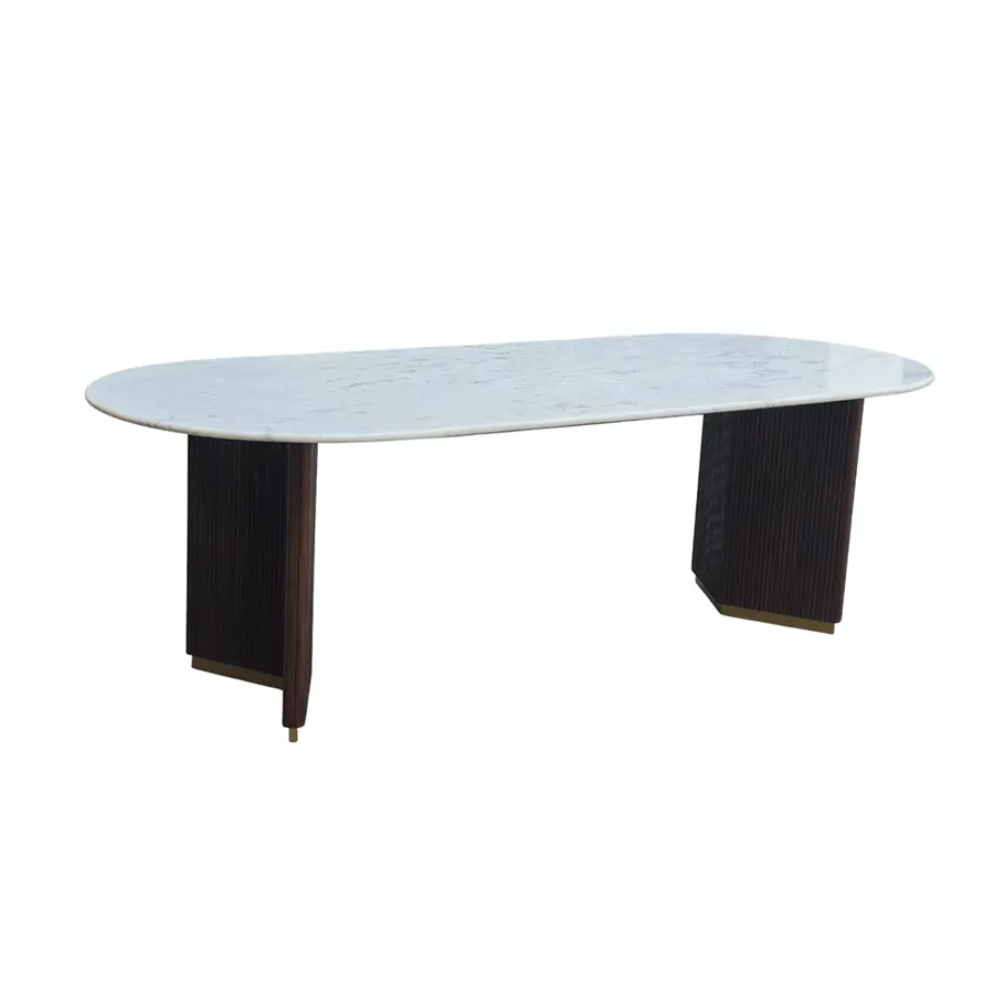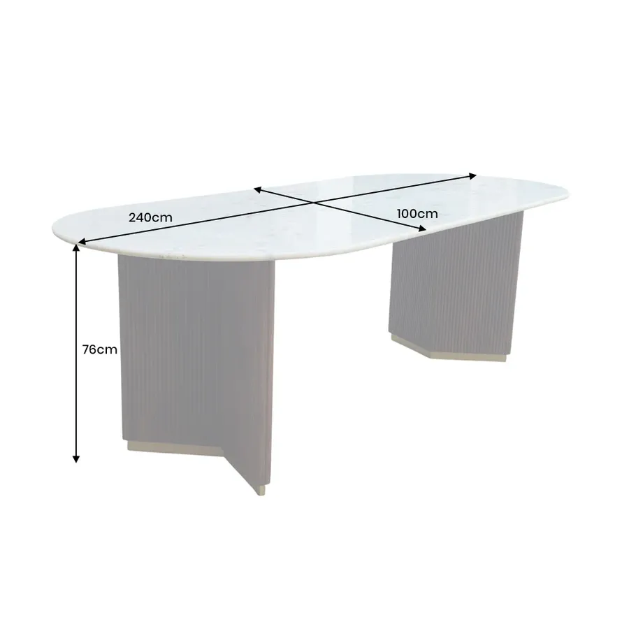 Ale nie tylko wygląd zewnętrzny stołu Gatsby robi wrażenie na pierwszy rzut oka. Złote, metalowe nogi stołu stanowią ekscytujący kontrast z solidnym, owalnym blatem. Stół jadalniany o wymiarach 240 x 100cm stanie się sercem Twojej jadalni i stworzy przytulną atmosferę do wspólnych posiłków i godzin towarzyskich.