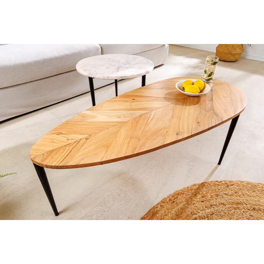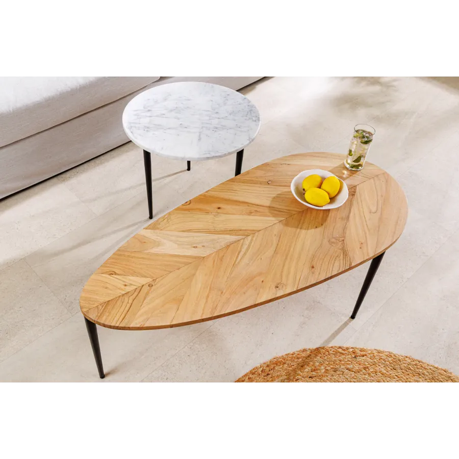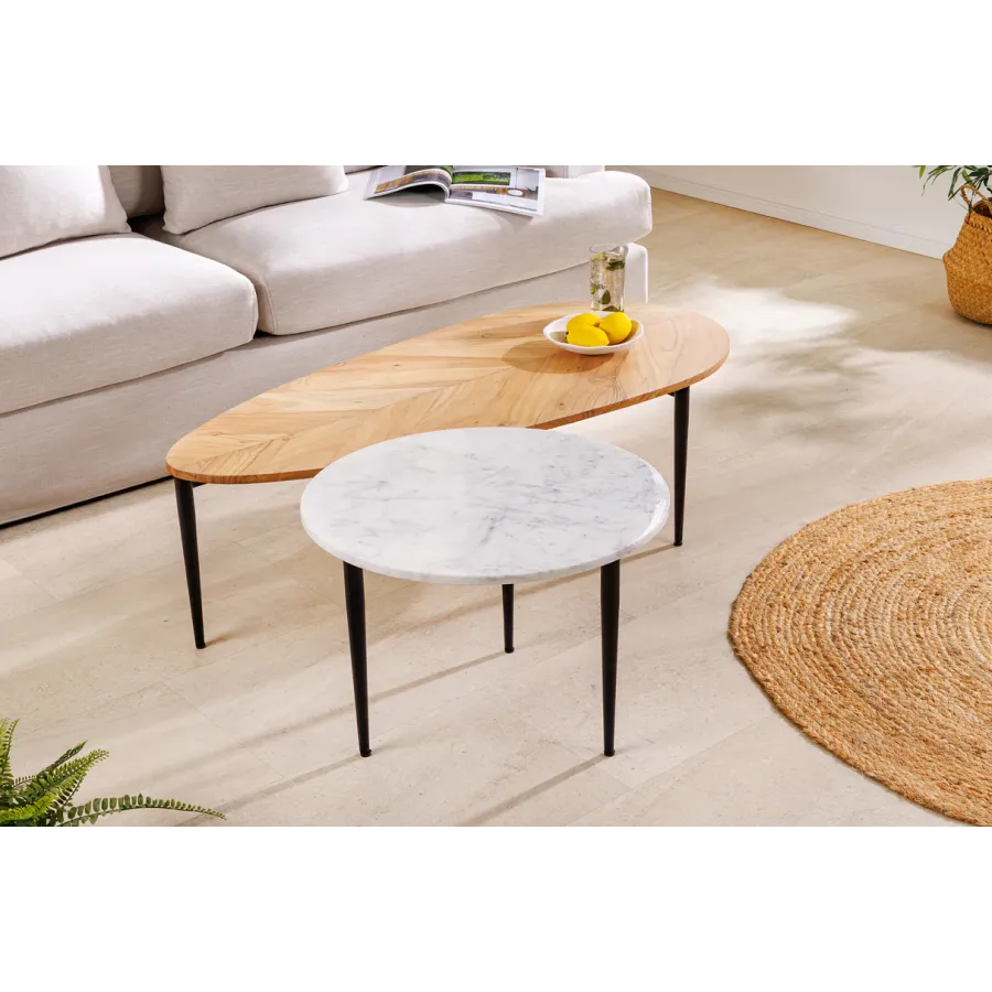 Invicta Stolik kawowy zestaw ADLON akacja biały marmur / 45187