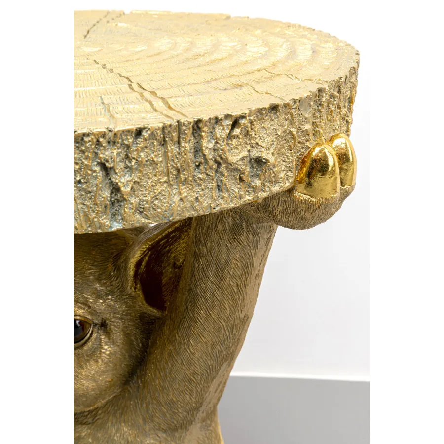 Ten uroczy stolik boczny wnosi do wnętrza zabawny akcent – szczegółowa świnka nosi blat o wyglądzie naturalnego drewna. Niezależnie od tego, czy będzie to praktyczna półka obok sofy i fotela, element przyciągający wzrok w korytarzu, czy też oryginalny stolik nocny – ten designerski mebel w całości w błyszczącym złocie wprowadzi Cię w dobry nastrój, gdziekolwiek się udasz. Wykonany z wytrzymałej żywicy poliestrowej, jest jednocześnie wytrzymały i lekki. Idealny do nowoczesnych stylów życia z poczuciem humoru i indywidualnością