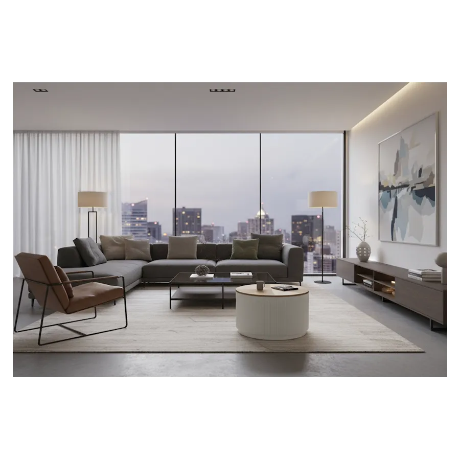 Elegancki stolik kawowy w odcieniu ciepłego ecru, zachwycający subtelnym designem i naturalnym wykończeniem.