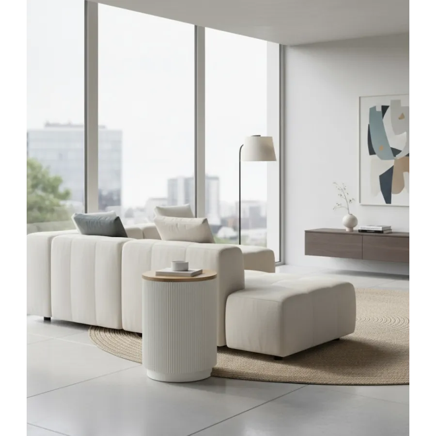 Dzięki uniwersalnej kolorystyce i ponadczasowemu designowi stolik doskonale komponuje się z wnętrzami w stylu modern, japandi, skandynawskim czy minimalistycznym.