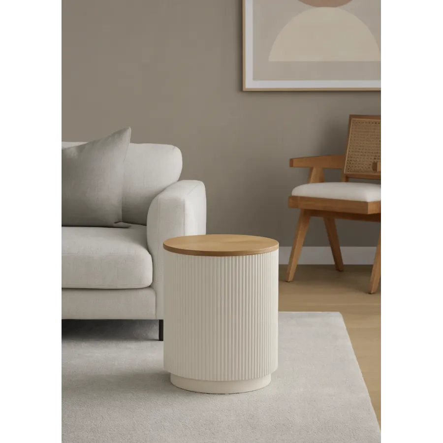 Minimalistyczny stolik w kolorze ciepłego ecru to połączenie subtelnej elegancji i nowoczesnej formy.