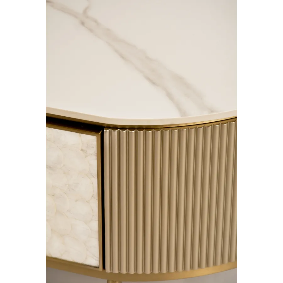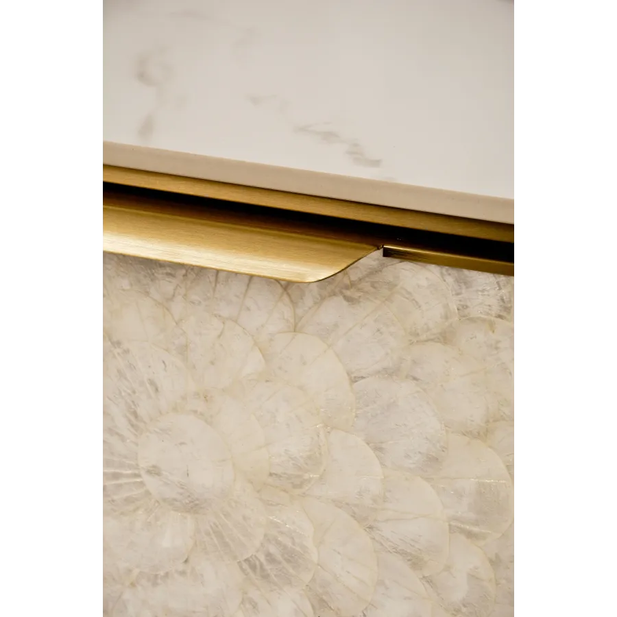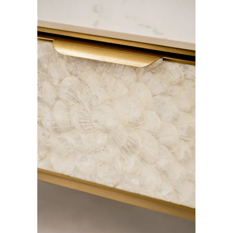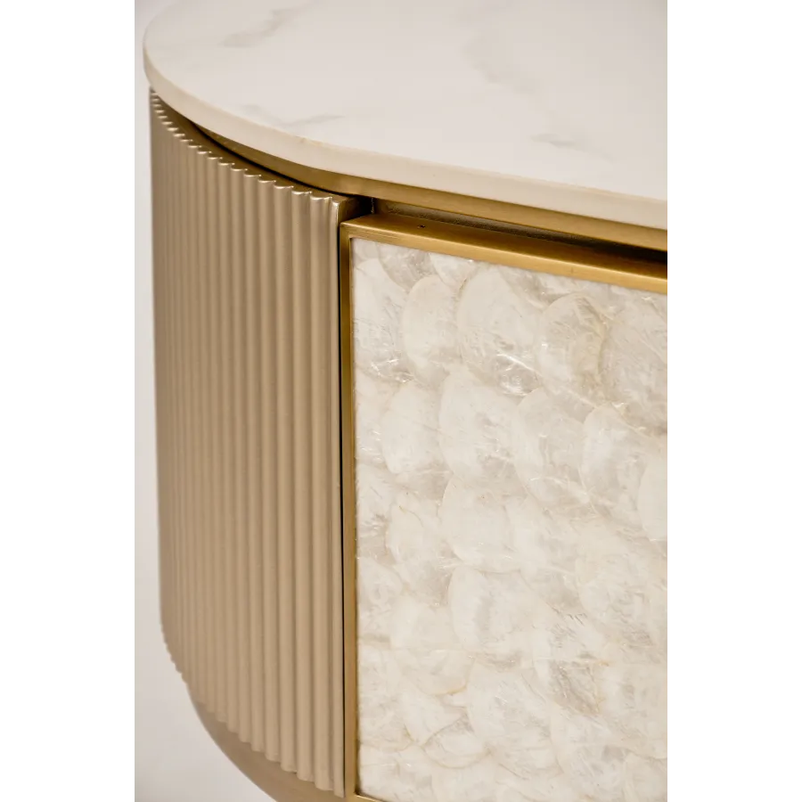 MDF, naturalna muszla morska, stal nierdzewna, blat: marmur syntetyczny