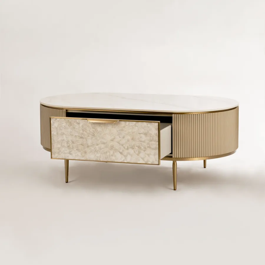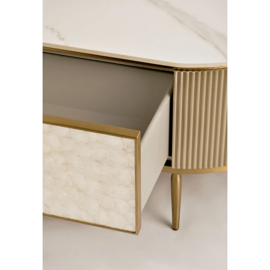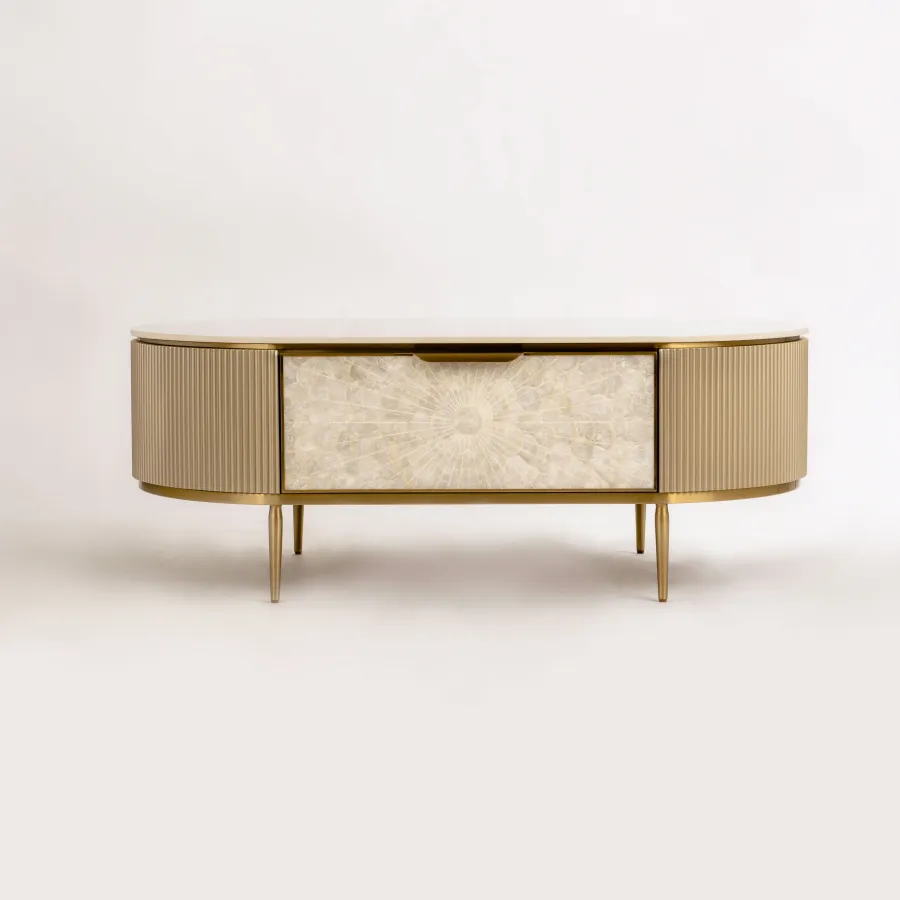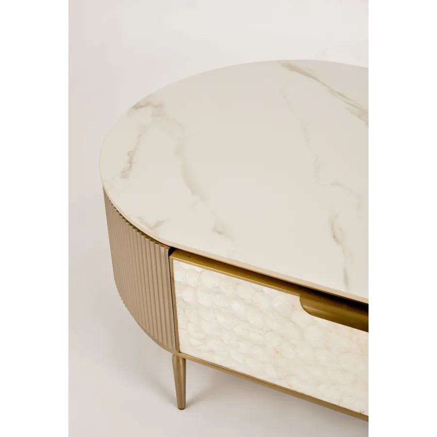 MDF, naturalna muszla morska, stal nierdzewna, blat: marmur syntetyczny