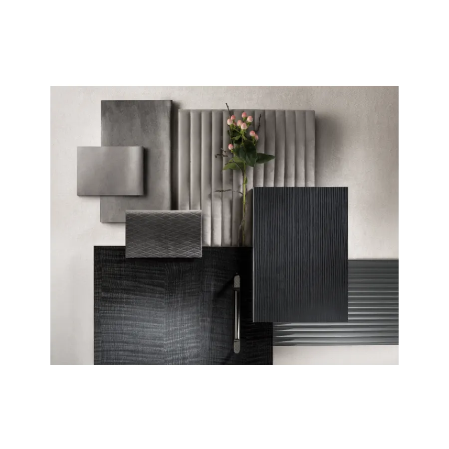 Dzięki cennemu kontrastowi pomiędzy matowym czarnym wykończeniem jesionu a wykończeniem o wysokim połysku dymionego szarego drewna jaworowego, lampa do salonu/stolik końcowy Meridiana jest elementem projektu Adora, który dzięki swojej wyrafinowanej prezencji dodaje wartości otoczeniu.