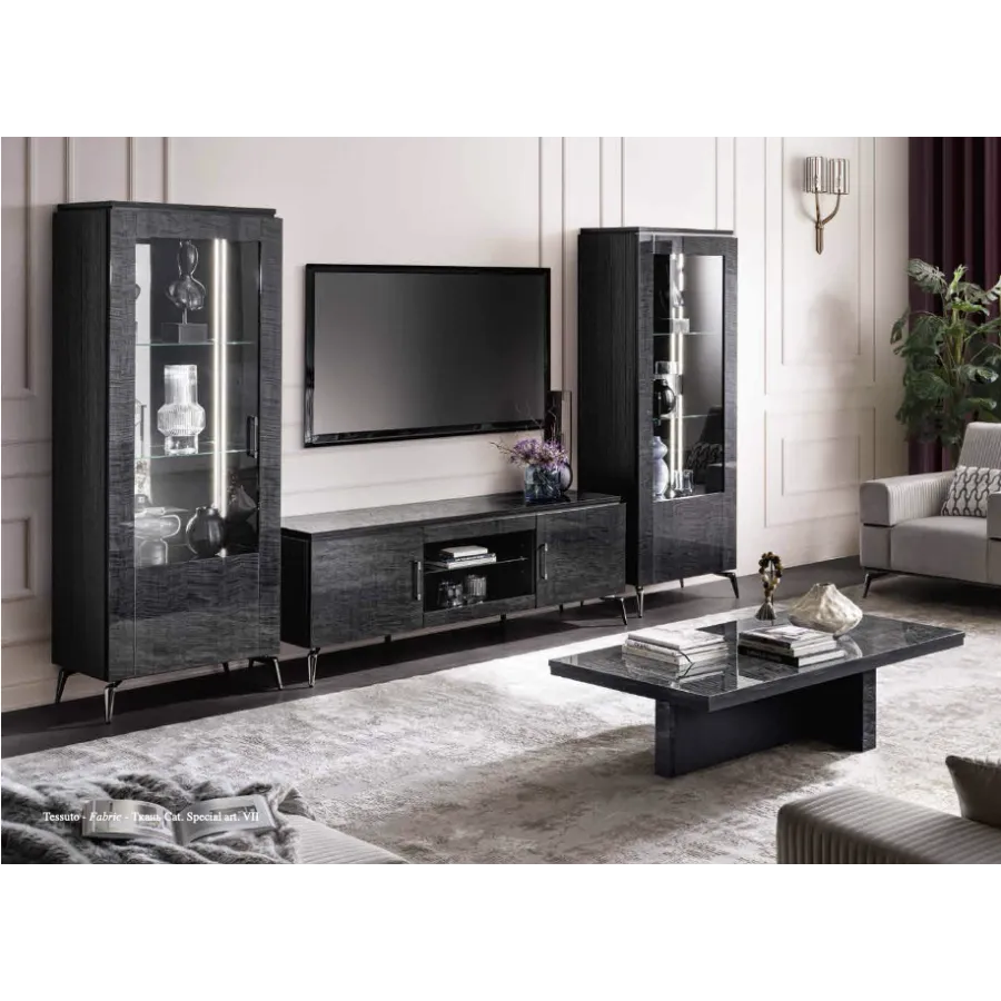 Dzięki cennemu kontrastowi pomiędzy matowym czarnym wykończeniem jesionu a wykończeniem o wysokim połysku dymionego szarego drewna jaworowego, lampa do salonu/stolik końcowy Meridiana jest elementem projektu Adora, który dzięki swojej wyrafinowanej prezencji dodaje wartości otoczeniu.