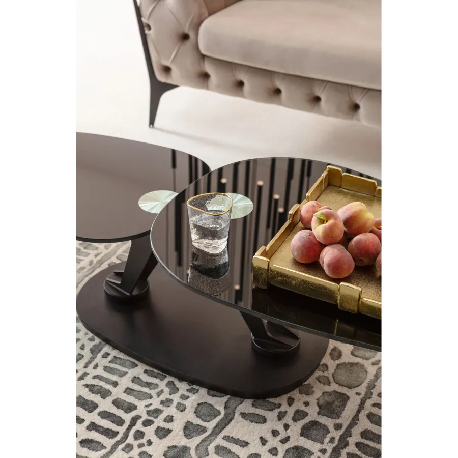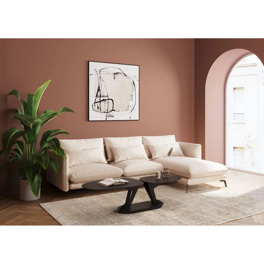 Wyobraź sobie, że po prostu wygodnie rozsiadasz się na sofie, siedząc lub leżąc. Jednak jakimś cudem stolik kawowy nie jest w zasięgu ręki. W tym przypadku stół do salonu Franklin oferuje praktyczne i stylowe rozwiązanie zamiast przesuwać stoły. Posiada dwie harmonijnie ukształtowane powierzchnie, z których każdą można samodzielnie obracać. Oznacza to, że możesz wielokrotnie przekształcać ten designerski stolik kawowy, w zależności od tego, jak obrócisz blaty. Pomysł na projekt Franklina to nie jedyna zaleta tego eleganckiego stolika bocznego. Otrzymasz mebel wykonany z trwałych materiałów o wysokiej jakości, dzięki czemu zachowa swoją wartość. Jego styl jest nowoczesny i ponadczasowy, a także będzie pasował do krajobrazu Twojego następnego salonu