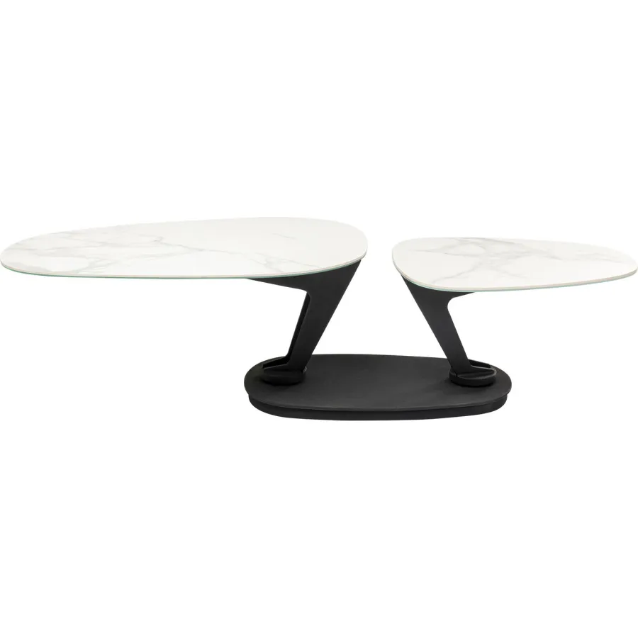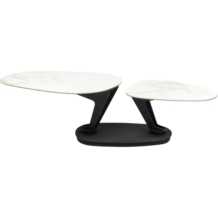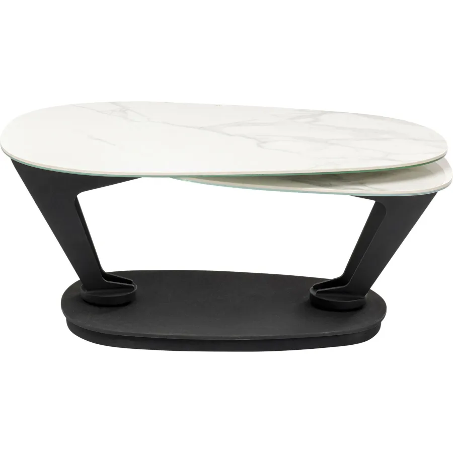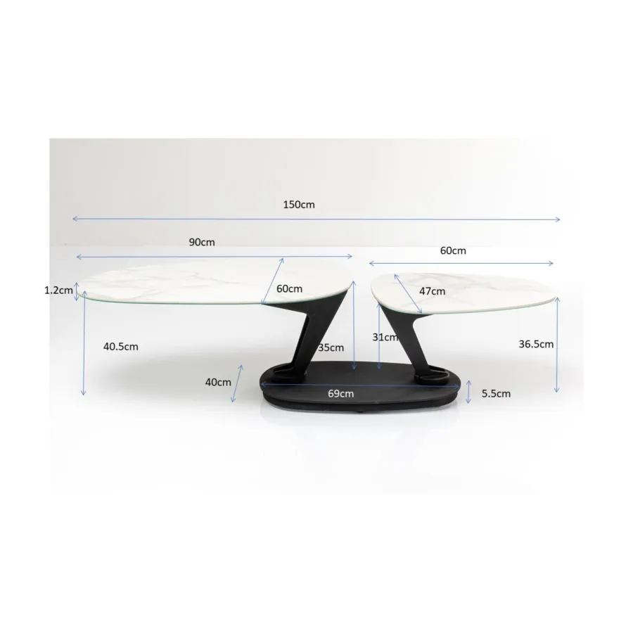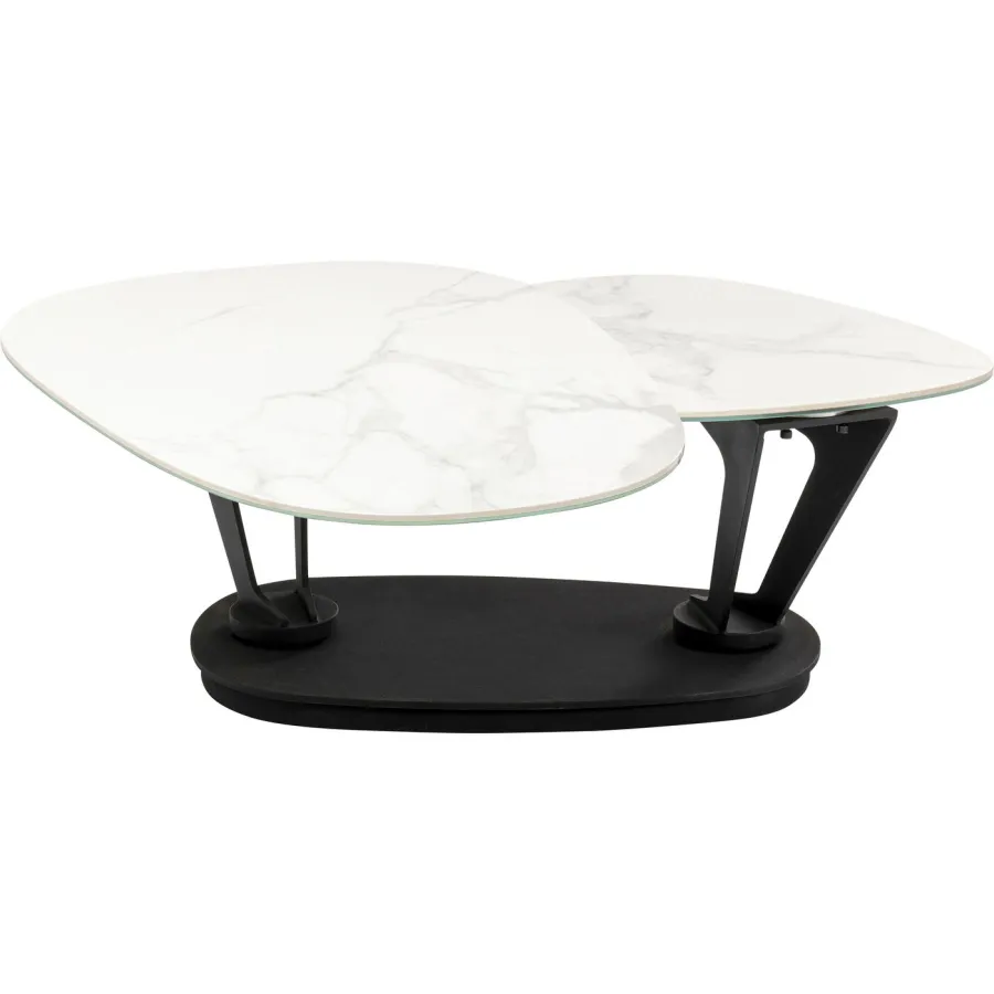 Wyobraź sobie, że po prostu wygodnie rozsiadasz się na sofie, siedząc lub leżąc. Jednak jakimś cudem stolik kawowy nie jest w zasięgu ręki. W tym przypadku stół do salonu Franklin oferuje praktyczne i stylowe rozwiązanie zamiast przesuwać stoły. Posiada dwie harmonijnie ukształtowane powierzchnie, z których każdą można samodzielnie obracać. Oznacza to, że możesz wielokrotnie przekształcać ten designerski stolik kawowy, w zależności od tego, jak obrócisz blaty. Pomysł na projekt Franklina to nie jedyna zaleta tego eleganckiego stolika bocznego. Otrzymasz mebel wykonany z trwałych materiałów o wysokiej jakości, dzięki czemu zachowa swoją wartość. Jego styl jest nowoczesny i ponadczasowy, a także będzie pasował do krajobrazu Twojego następnego salonu