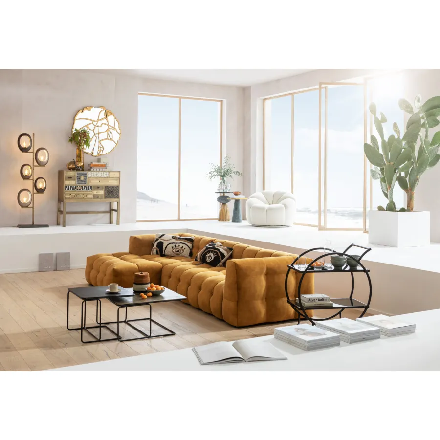 Funkcjonalność i klasa z zacięciem projektowym: tym, co czyni ten zestaw stolików kawowych tak wyjątkowym, jest z pewnością ich wyjątkowo wysoka jakość wykończenia. Zestaw ten to inwestycja, która na pewno zwróci się w dłuższej perspektywie. Ramy są niepowtarzalne, a stoły są wykonane ręcznie, jako pojedyncze egzemplarze. Szczególnie praktyczną cechą jest to, że można je zsunąć razem lub używać osobno. Są to zarówno stoliki boczne, jak i elegancki obiekt designerski w jednym, co może być tylko imponującym elementem! Idealny dodatek do domu, jako stolik nocny lub w sali konferencyjnej