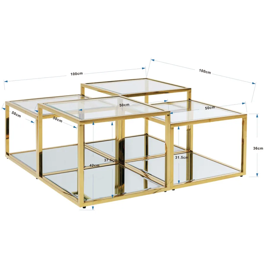 Jeden stół, nieskończone możliwości! Orion składa się z czterech szklanych kostek, które razem tworzą duży stolik kawowy - ale można je również ustawić w pomieszczeniu pojedynczo lub w parach. Szklane stoliki można ustawić według uznania przed sofą i narożnikiem lub indywidualnie obok części wypoczynkowej. Używane jako stoliki nocne, podnoszą Twoją sypialnię do poziomu wielkiego hotelu