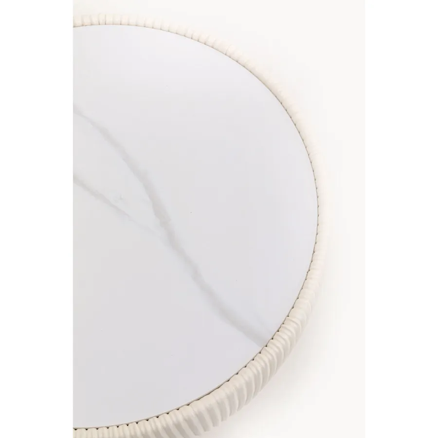 Blat: lakierowana ceramika, części boczne: poliuretan, podstawa/stopa: stal satynowana, panele: tkanina powlekana poliuretanem, podstawa: płyta pilśniowa średniej gęstości (MDF) pokryta żywicą melaminową, grubość płyty 6 mm