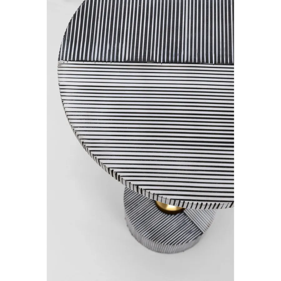 Rytmiczna gra linii i kontrastów: ten stolik kawowy stanowi stylowy akcent dzięki delikatnemu czarno-białemu wzorowi w paski. Graficzny design ożywia wnętrze i nadaje mu nowoczesny, artystyczny charakter. Niezależnie od tego, czy będzie elegancką półką obok ulubionego fotela, scenografią dla designerskich przedmiotów, czy elementem wystroju salonu – ten wszechstronny mebel zachwyca formą i funkcjonalnością. Prezentuje się szczególnie wyraziście w połączeniu z monochromatycznymi tkaninami, szklanymi dodatkami lub czystymi, geometrycznymi kształtami. To designerski obiekt, który z łatwością łączy przejrzystość i kreatywność.