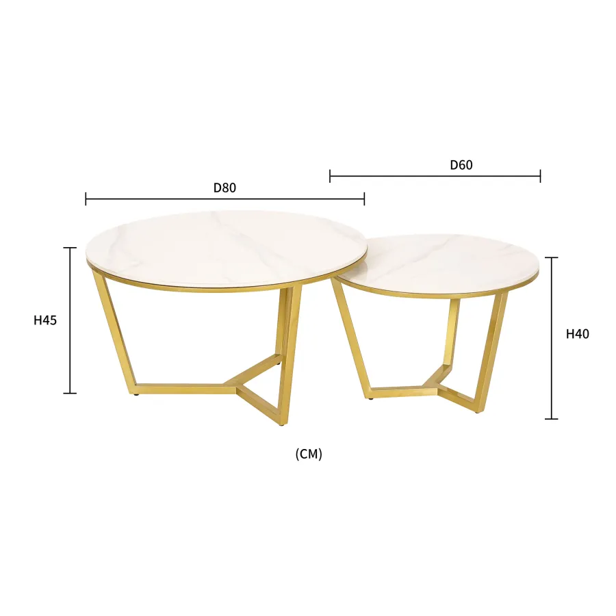 Mniejszy stolik - 60 x 60 x 40 (waga 15kg), większy stolik - 80 x 80 x 45 (waga 19kg)