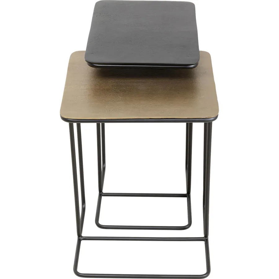 Funkcjonalność i klasa z zacięciem projektowym: tym, co czyni ten zestaw stolików bocznych tak wyjątkowym, jest ich wysoka jakość wykonania i purystyczny, rzeźbiarski design. Niezależnie od tego, jak urządzisz swój dom, stoliki kawowe dzięki swojej wszechstronności zawsze dobrze komponują się z otoczeniem. Praktyczną funkcją jest to, że stoły można zsunąć, aby zaoszczędzić miejsce. Do salonu obok sofy i fotela, jako stoliki nocne przy łóżku lub jako małe stoliki w sali konferencyjnej na przerwę kawową – metalowe stoliki boczne sprawdzą się wszędzie jako zgrabni pomocnicy