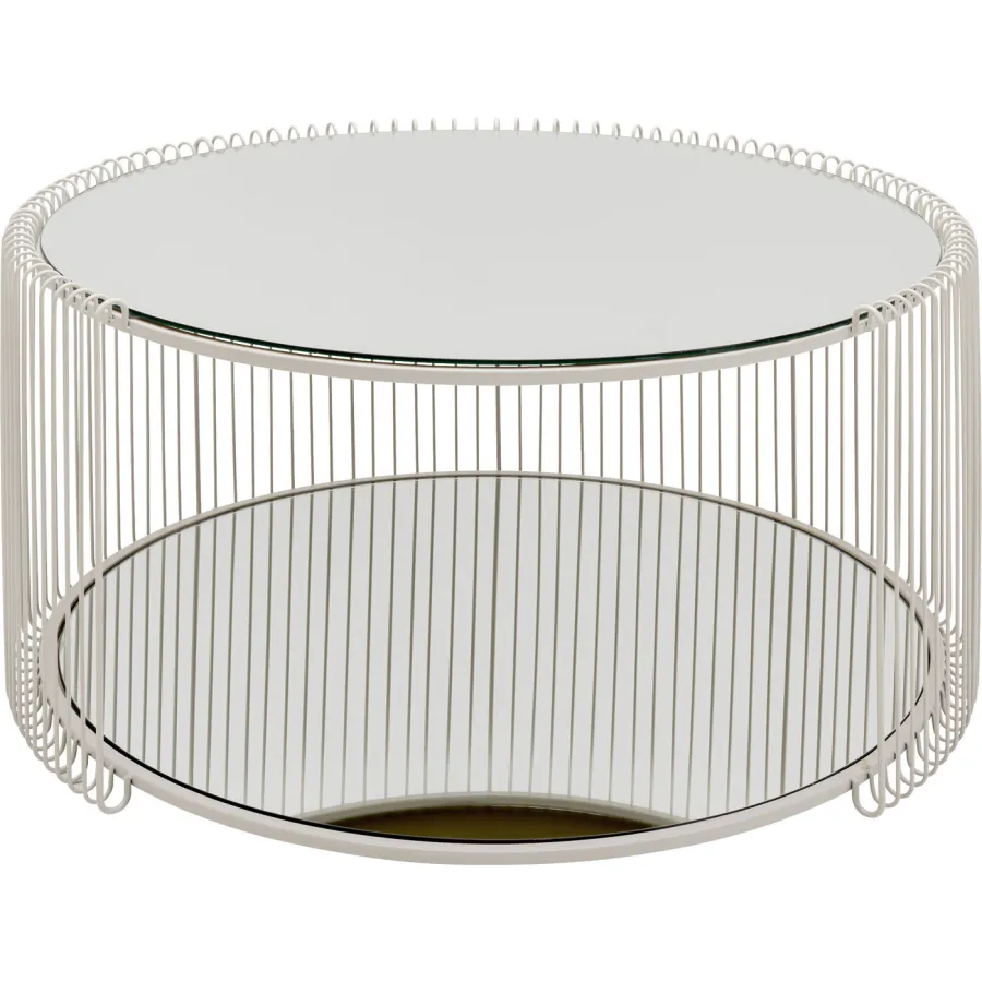 Okrągły, przyciągający wzrok z wyrafinowaną grafiką: ten stolik kawowy wnosi stylową lekkość do salonu dzięki delikatnej metalowej ramie i dwóm lustrzanym szklanym blatom. Odblaskowa powierzchnia tworzy ekscytującą grę światła i sprawia, że małe pomieszczenia wydają się bardziej przestronne. Idealny do wyeksponowania artystycznych przedmiotów dekoracyjnych, książek na stolik kawowy lub tacy z napojami. Szczególnie harmonijny w gładkiej czerni w połączeniu z miękkimi dywanami, minimalistycznymi sofami lub błyszczącymi metalowymi dodatkami. Niezależnie od tego, czy będzie to elegancki element centralny, czy stylowa oaza spokoju – to akcesorium domowe doda każdemu wnętrzu odrobinę miejskiego blasku i funkcjonalnego wyglądu
