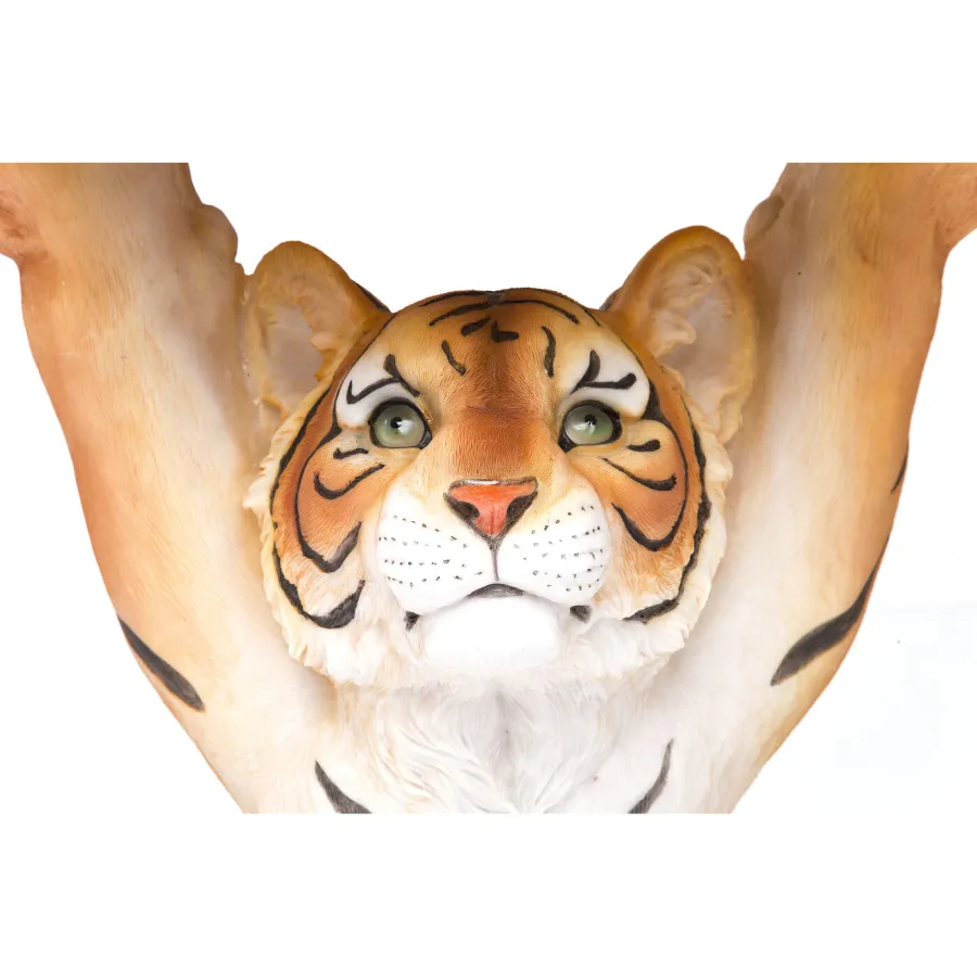 Nasz wyjątkowy stolik boczny z tygrysem będzie absolutną atrakcją w Twoim wnętrzu! Ten pomocny duży kot jest nie tylko niezwykle praktyczny do umieszczenia na nim napojów lub przekąsek, ale także stanowi prawdziwą ozdobę. Stół do salonu wykonany jest blisko natury i zawiera wiele starannie wykonanych detali. Czy to w salonie, sypialni, czy w biurze – ten stół w kształcie tygrysa z pewnością poprawi atmosferę