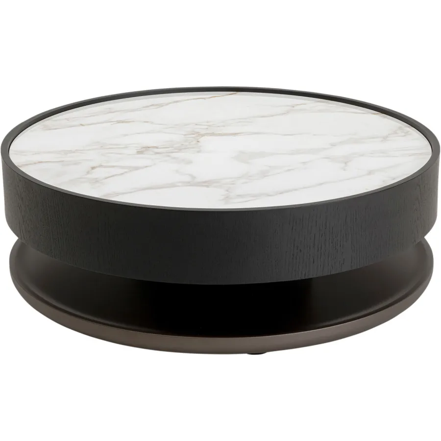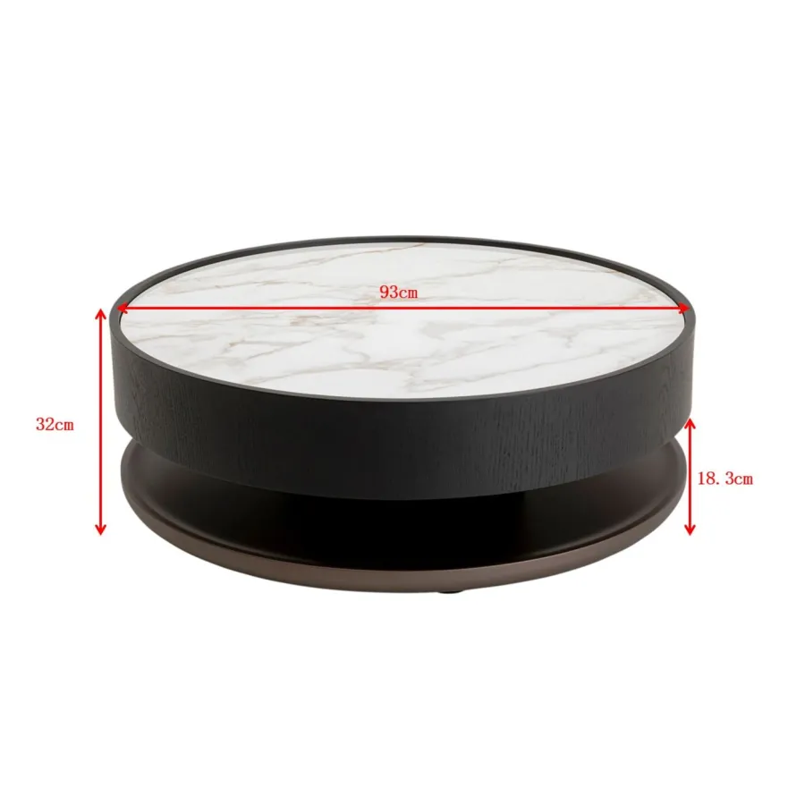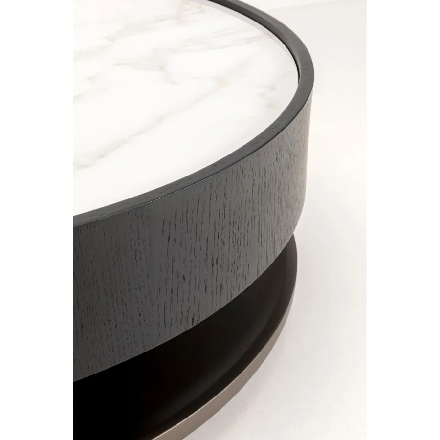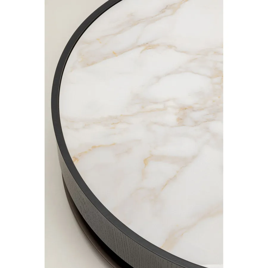 Ten okrągły stolik kawowy w kolorze czarno-kremowo-białym z ceramicznym blatem stworzy w pomieszczeniu nowoczesną, stylową atmosferę. Połączenie kolorów prezentuje się elegancko i ponadczasowo, a okrągły kształt dodaje delikatnych, harmonijnych akcentów. Ceramiczny blat nadaje stolikowi charakterystyczną, łatwą w pielęgnacji powierzchnię, która jest jednocześnie wytrzymała i estetyczna. To połączenie idealnie wpisuje się w minimalistyczny i skandynawski styl aranżacji, tworząc jednocześnie elegancki, zrównoważony wygląd.