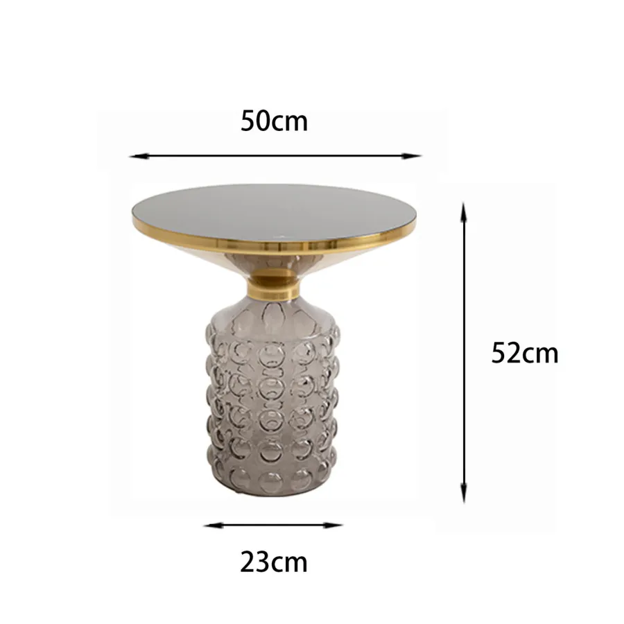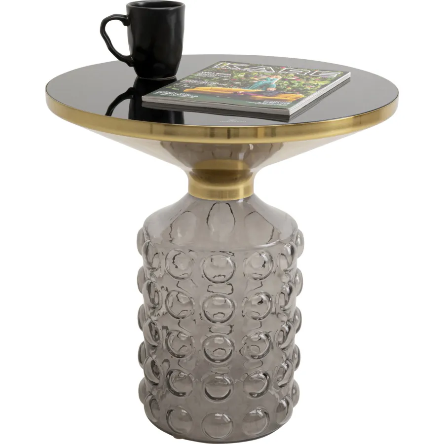 Prawdziwy wyrazisty element wnętrz dbających o styl: ten stolik boczny umiejętnie bawi się kształtem, kolorem i materiałem. Szara szklana rama przypomina obiekt sztuki rzeźbiarskiej i wnosi światło słoneczne nawet do minimalistycznych pomieszczeń. Czarny blat wykonany z bezpiecznego szkła zapewnia mnóstwo miejsca do przechowywania ulubionych elementów dekoracyjnych lub śniadania na sofie. Elementy stalowe w kolorze złota stanowią eleganckie akcenty i dodają szczypty blasku. Niezależnie od tego, czy występujesz jako solista obok fotela wypoczynkowego, czy w zestawie z innymi designerskimi przedmiotami - ten stół nadaje nowoczesnym przestrzeniom mieszkalnym stylową modernizację w stylu galerii sztuki. Idealny do odważnych stylizacji z charakterem